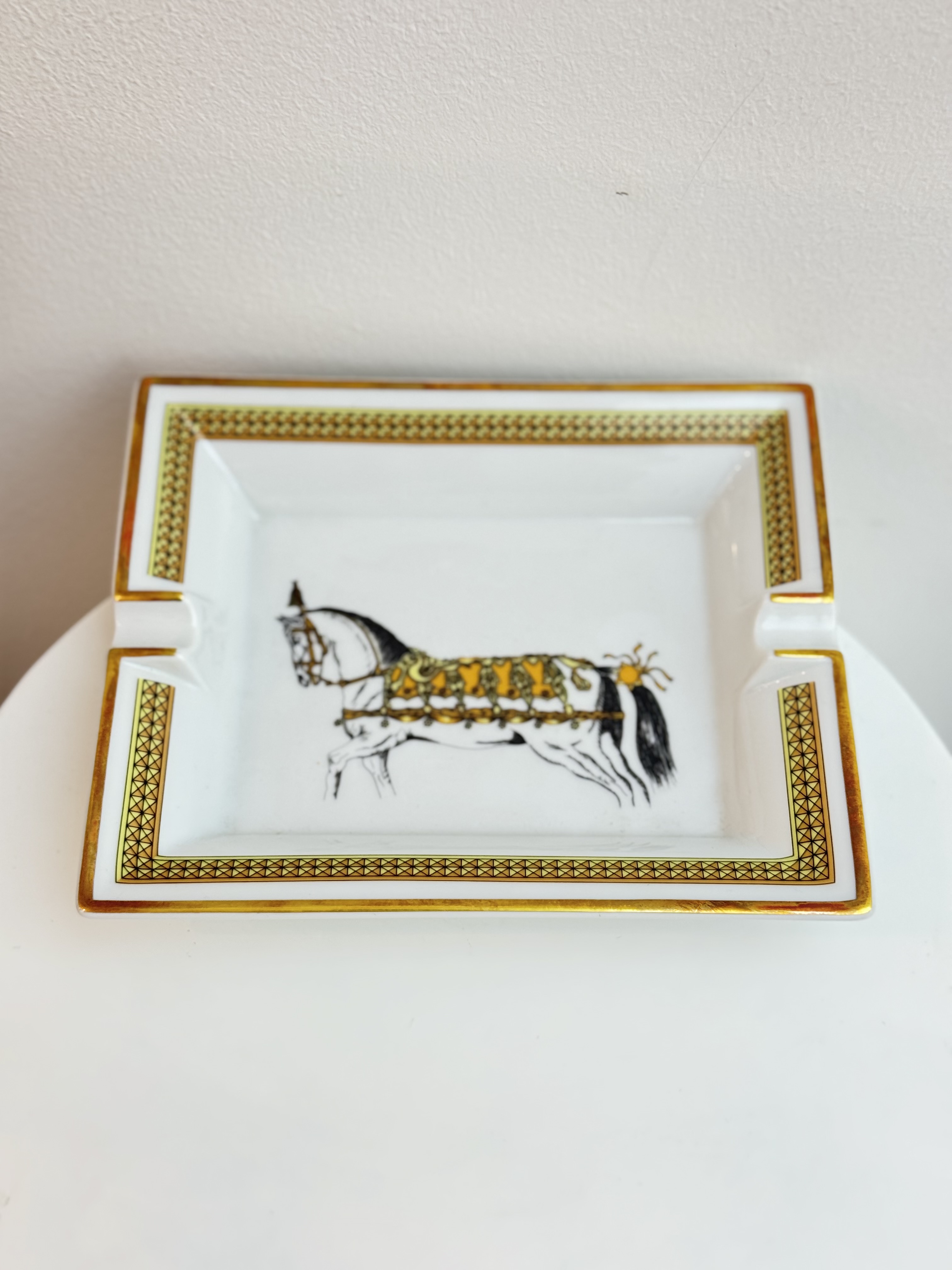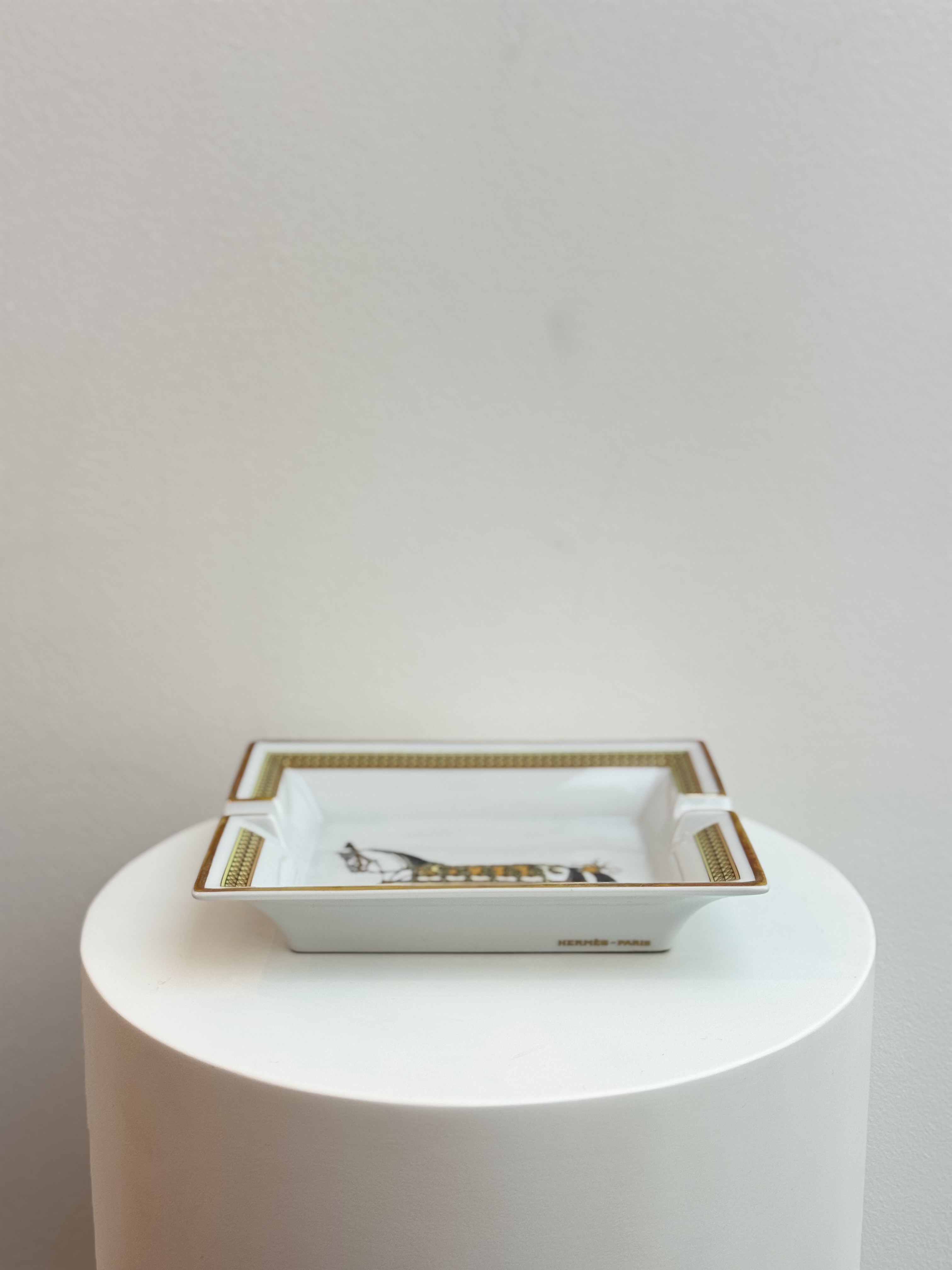 An elegant decorative piece, this Hermès ashtray is crafted from fine porcelain and showcases the Maison’s distinctive artistic heritage. Marked France (Frankrike), it reflects Hermès’ tradition of refined French craftsmanship and timeless design. Both functional and collectible, it serves as a sophisticated accent for any interior or curated luxury collection.