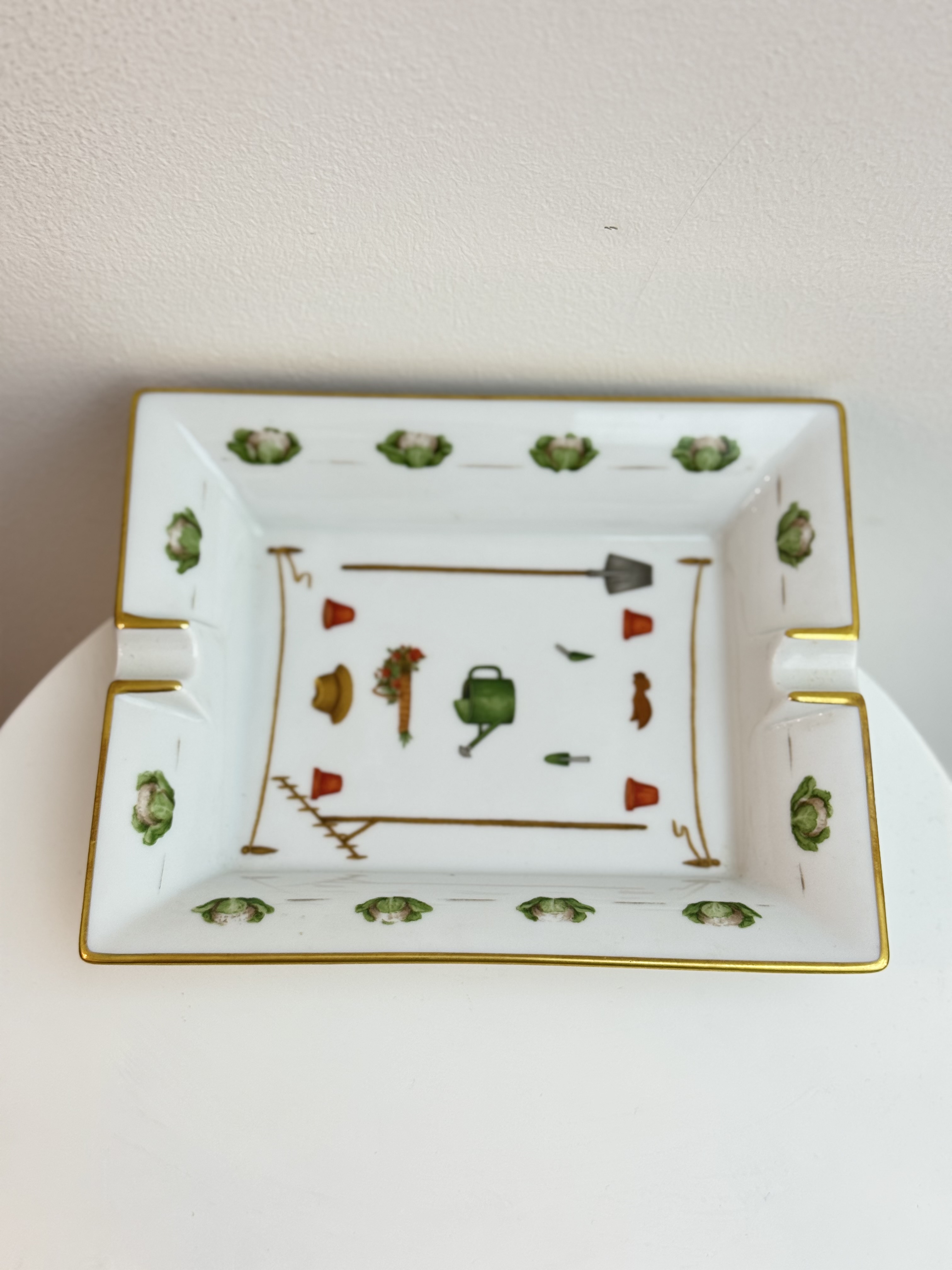 Crafted from fine porcelain, this Hermès ashtray features an elegant vegetables motif. Combining functionality with artistic detail, it is a sophisticated collectible piece that brings timeless elegance to any interior.