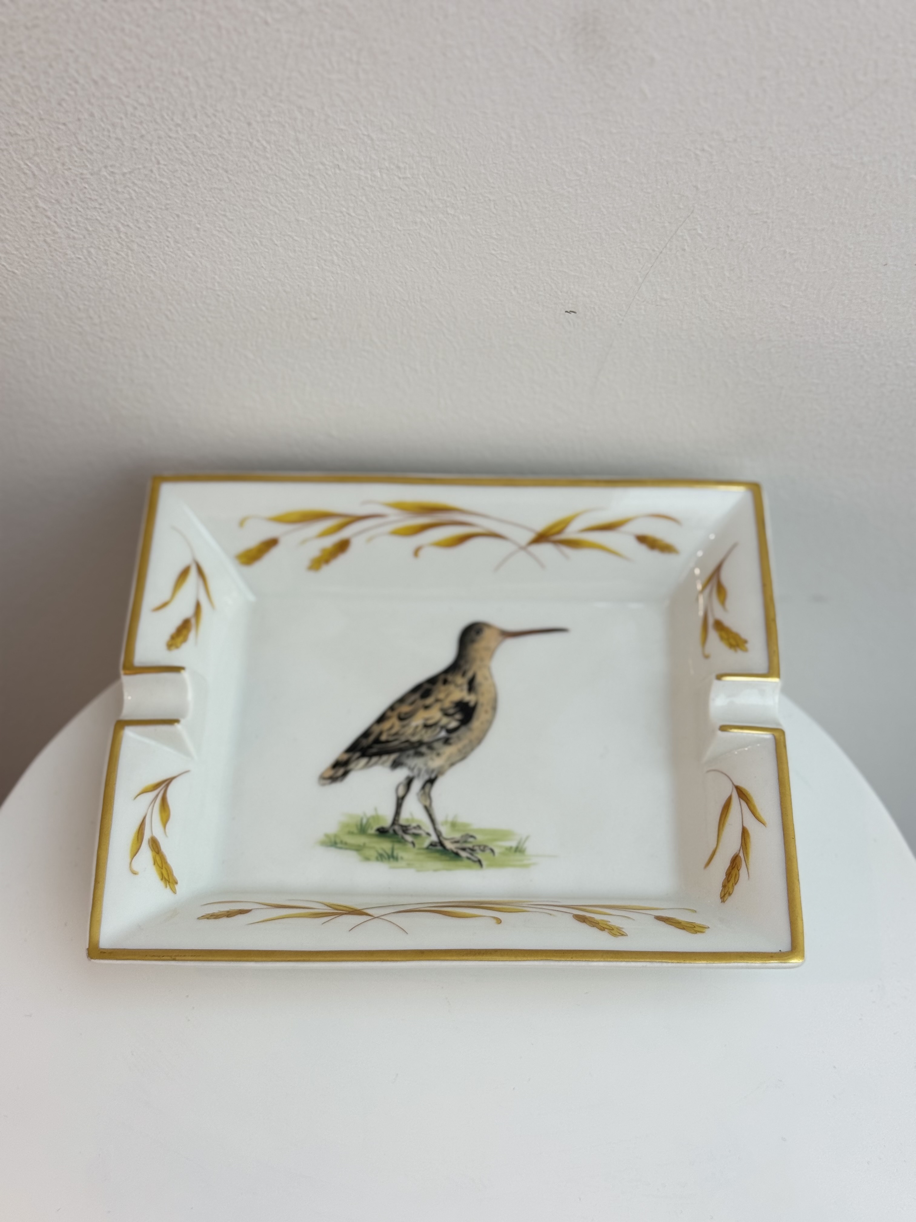 Exquisitely crafted from fine porcelain, this Hermès ashtray features a delicately hand-painted bird motif, showcasing the Maison’s legendary attention to detail and artistry. Elegant and functional, it serves as a collectible decorative accent, bringing a touch of refined French sophistication to any interior.