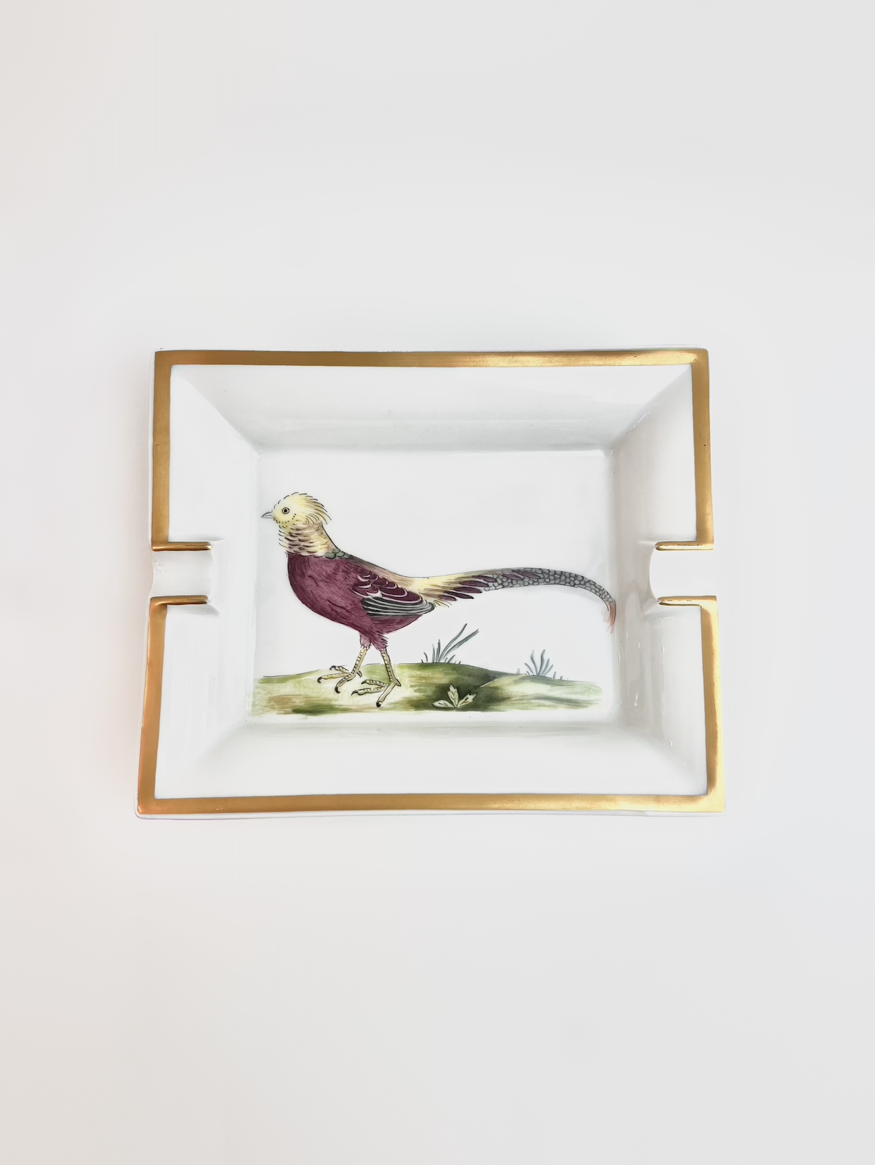 Crafted from fine porcelain, this Hermès ashtray features an elegant bird motif highlighting the tradition of refined French craftsmanship. Combining functionality with artistic detail, it is a sophisticated collectible piece that brings timeless elegance to any interior.