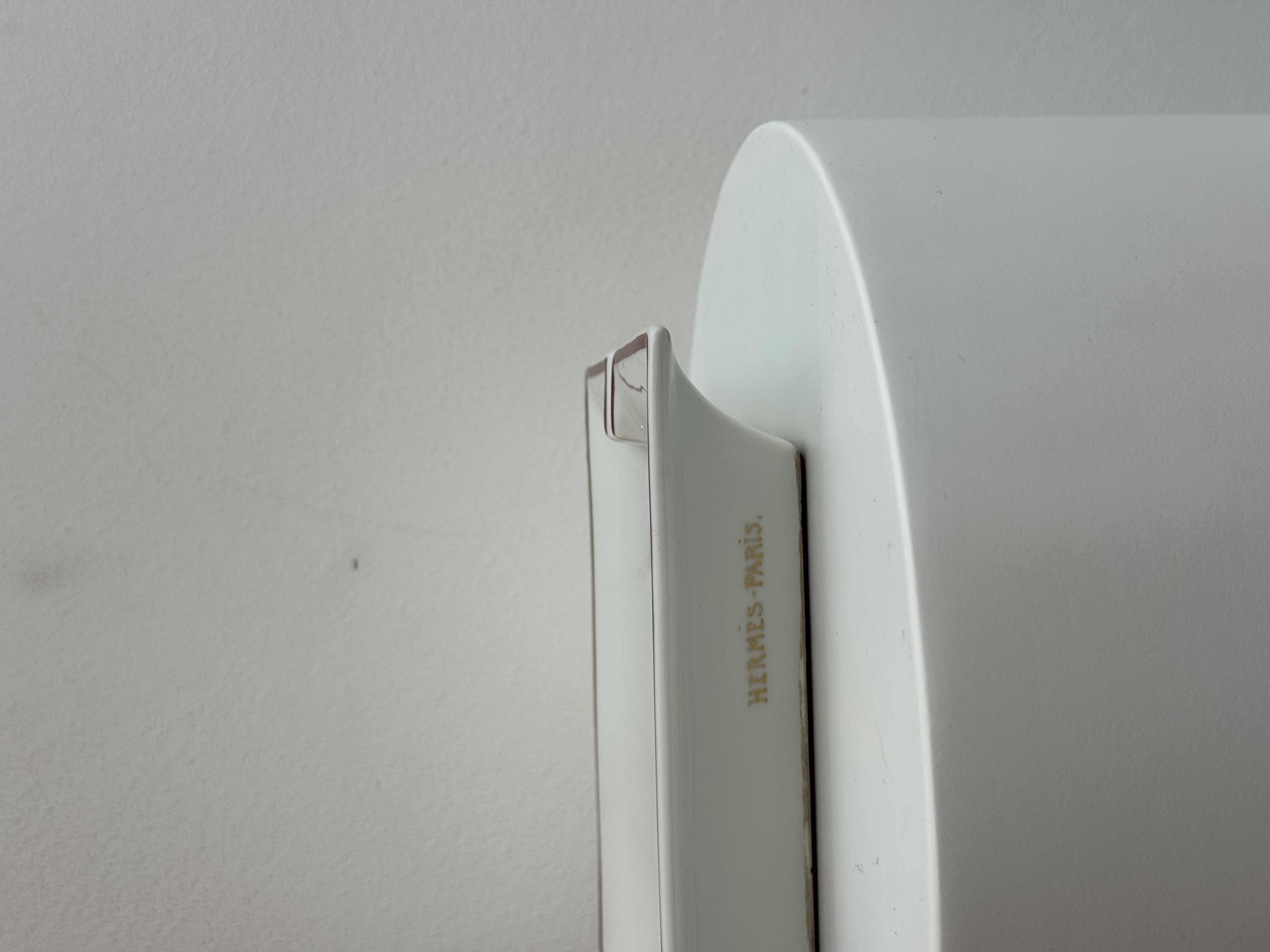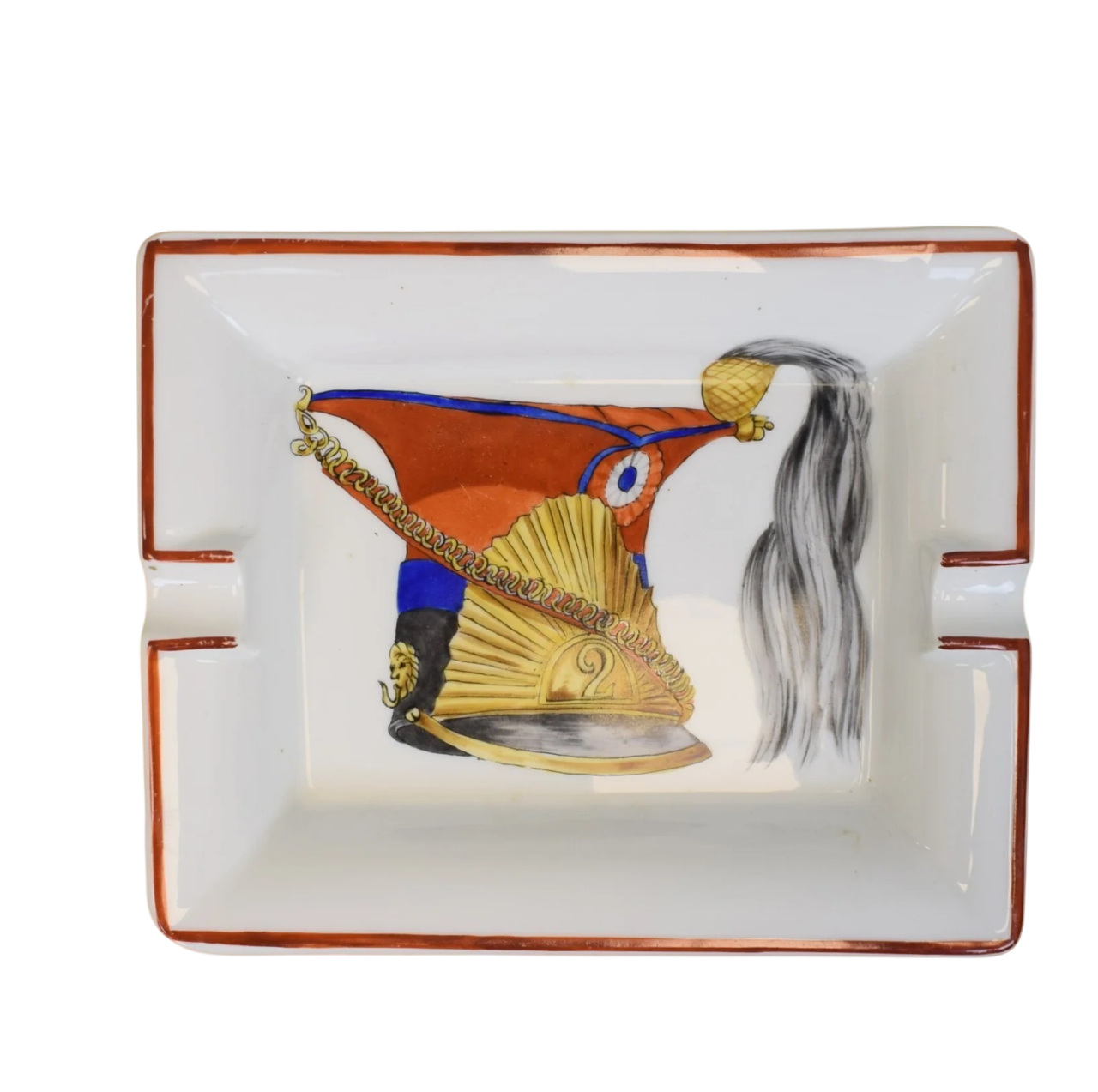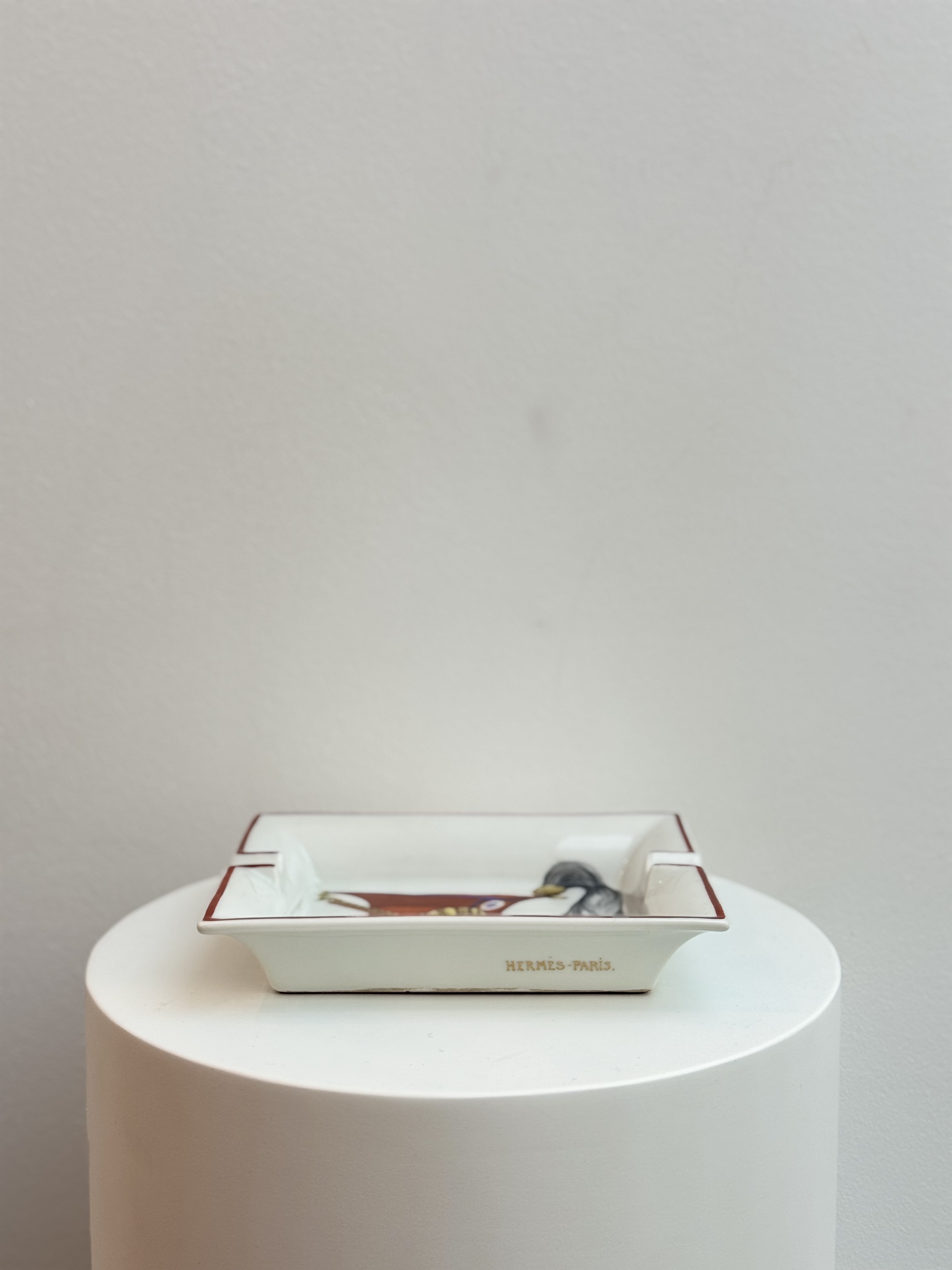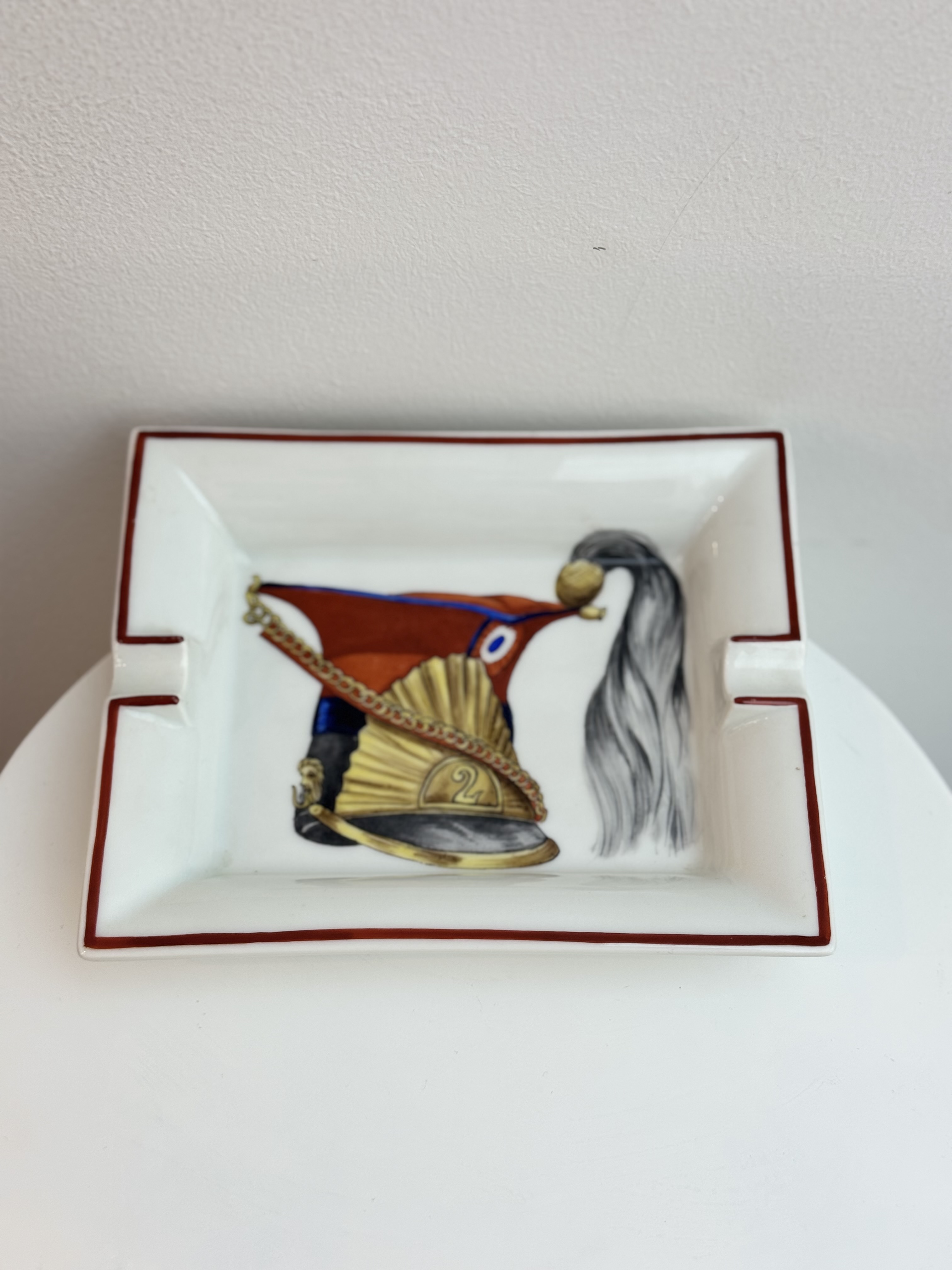 This Hermès ashtray is crafted from fine porcelain and adorned with the distinctive Képi motif, reflecting the Maison’s iconic French heritage and meticulous craftsmanship. Elegant and functional, it serves as a refined collectible piece, adding a touch of sophistication to any interior.