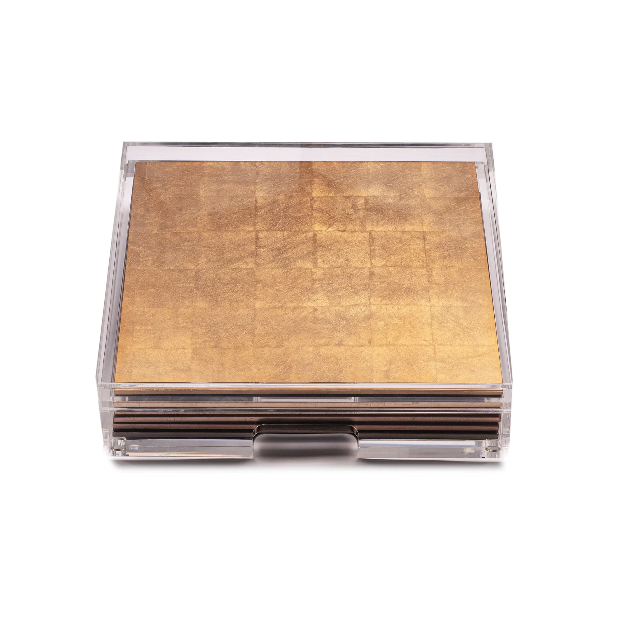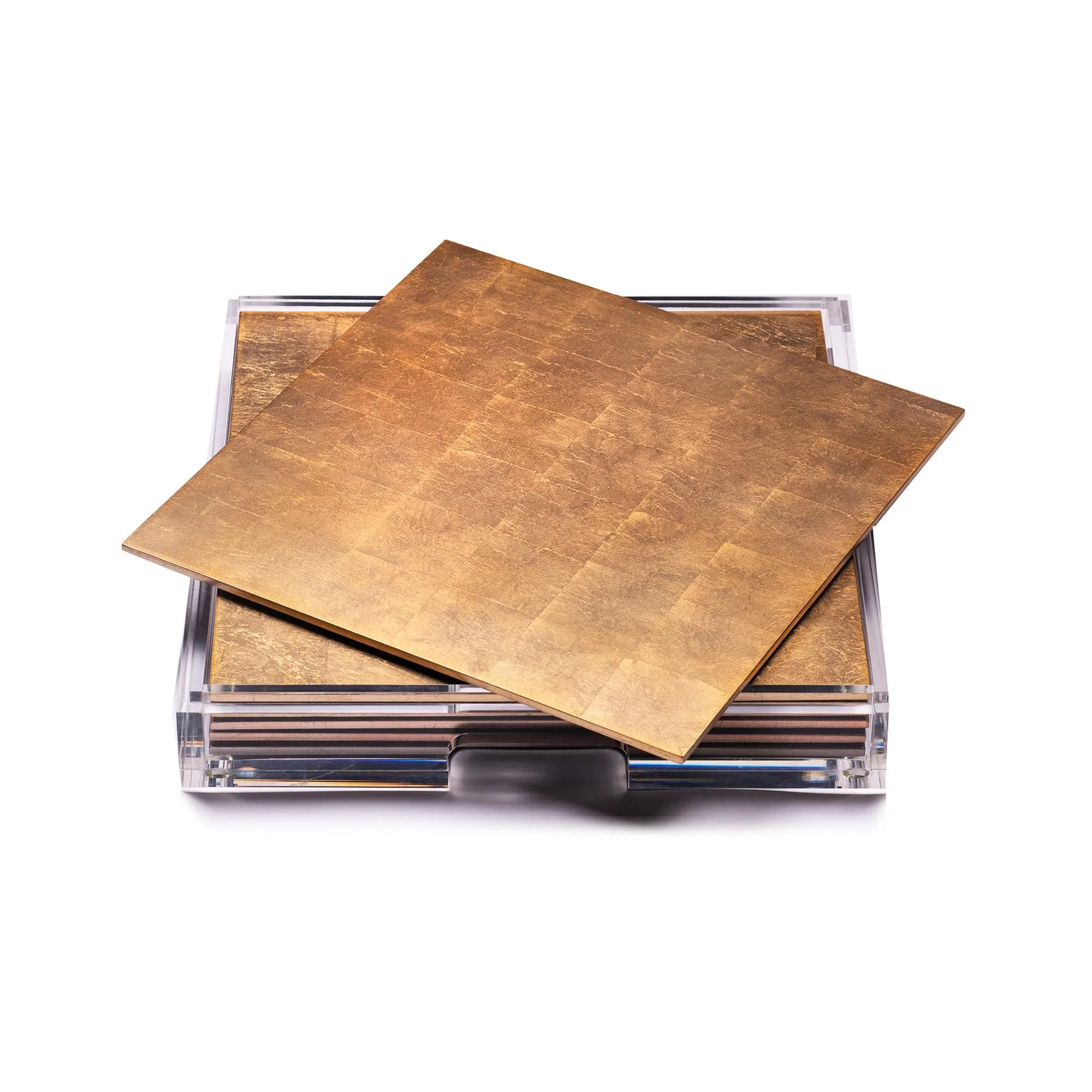 The Acrylic Placebox in Silver Leaf Gold a unique collection of placemats for a table setting of six. Handcrafted by artisans, the placemats are made from genuine silver leaf. Artisans apply each leaf by hand with eleven layers of special clear matte lacquer applied subsequently these are then hand polished between every layer to a chic matte end-finish. The placemats are housed in a sturdy clear display box, made of the highest grade of acrylic, the whole unit itself making a statement design piece.