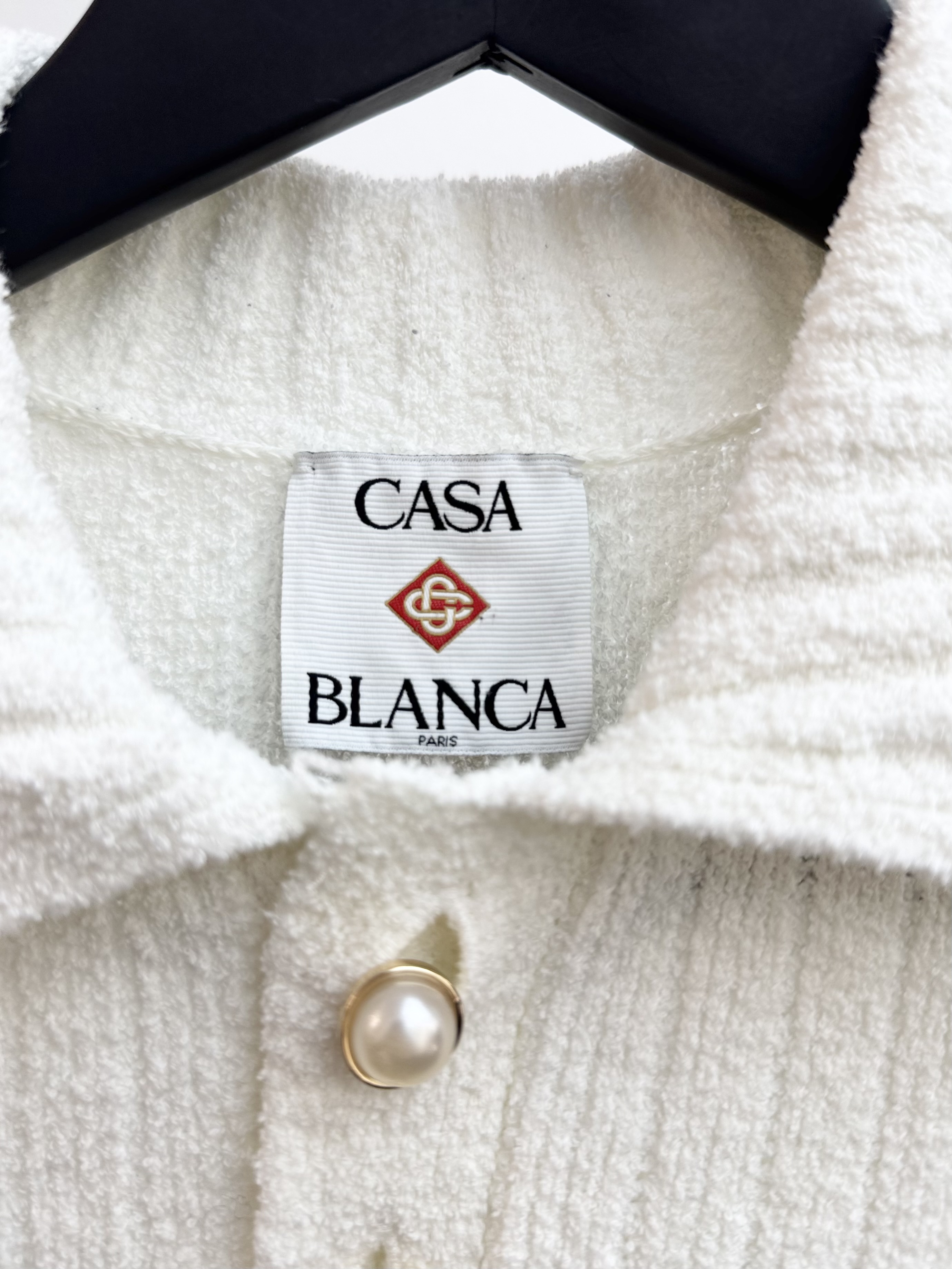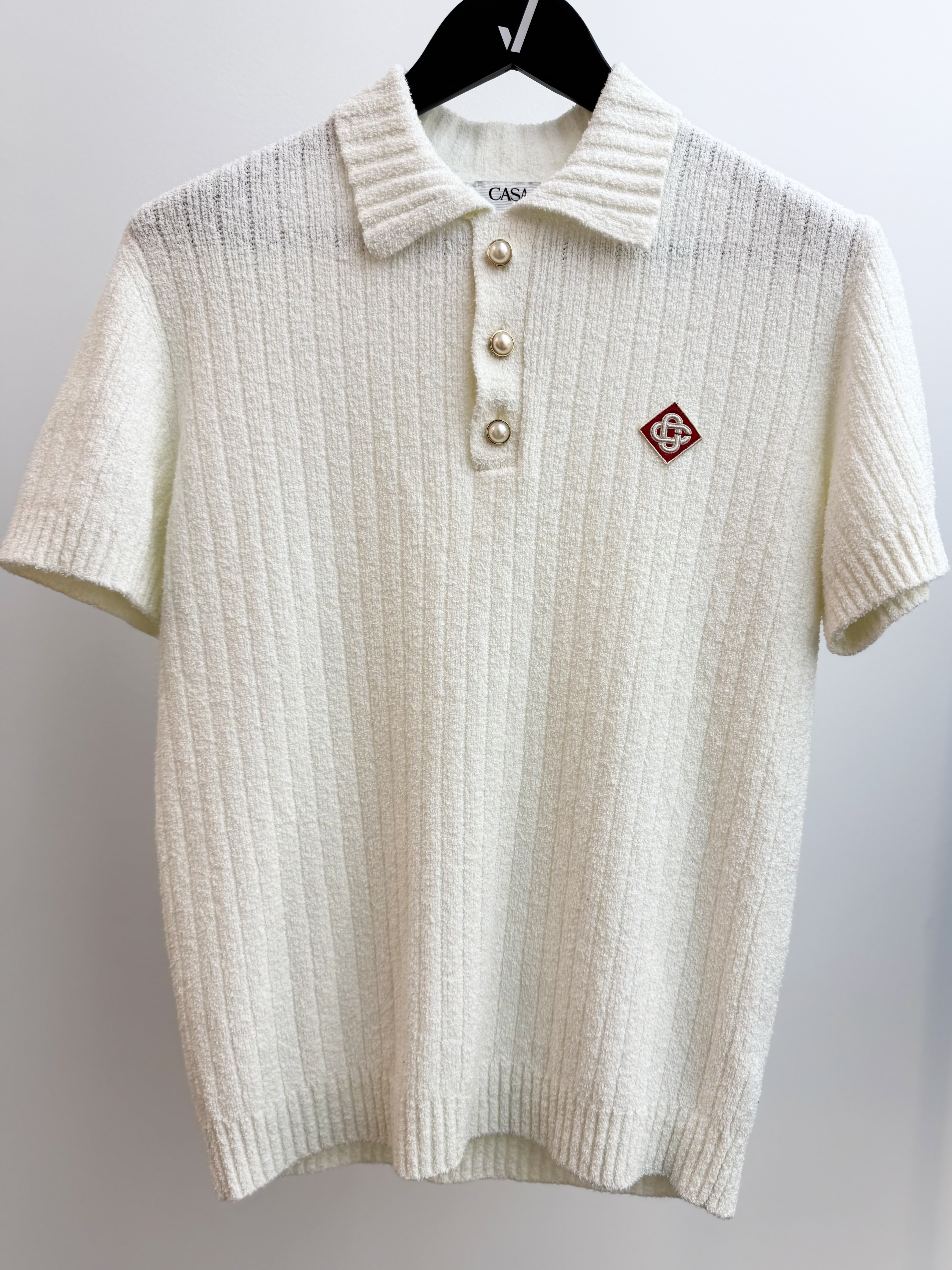 Effortlessly refined and richly textured, the Casablanca Logo‑Embroidered Bouclé Polo brings signature elegance to a timeless silhouette. Crafted in a tactile bouclé cotton‑blend, it features the brand’s distinctive chest‑embroidered emblem, classic polo collar and premium button detailing. Ideal for elevated daytime looks or relaxed evening moments, this polo injects subtle luxury into any wardrobe.