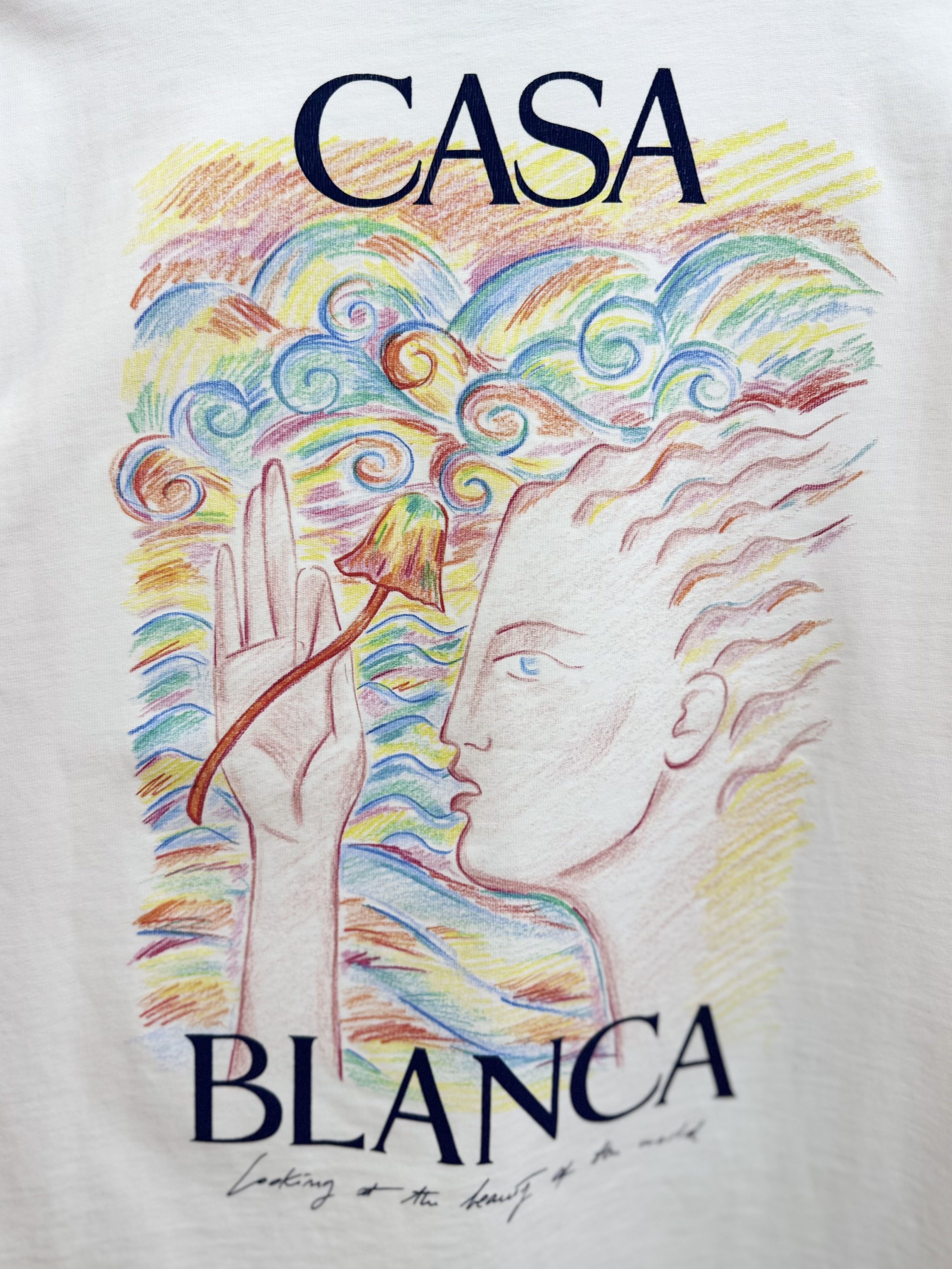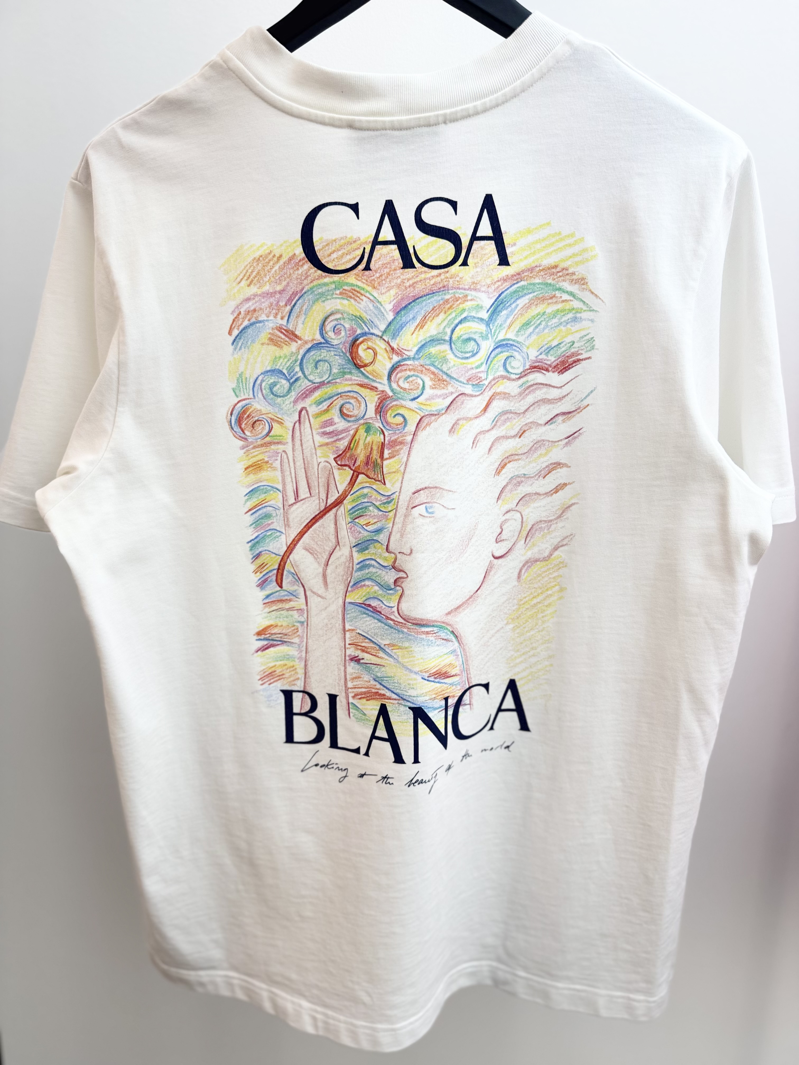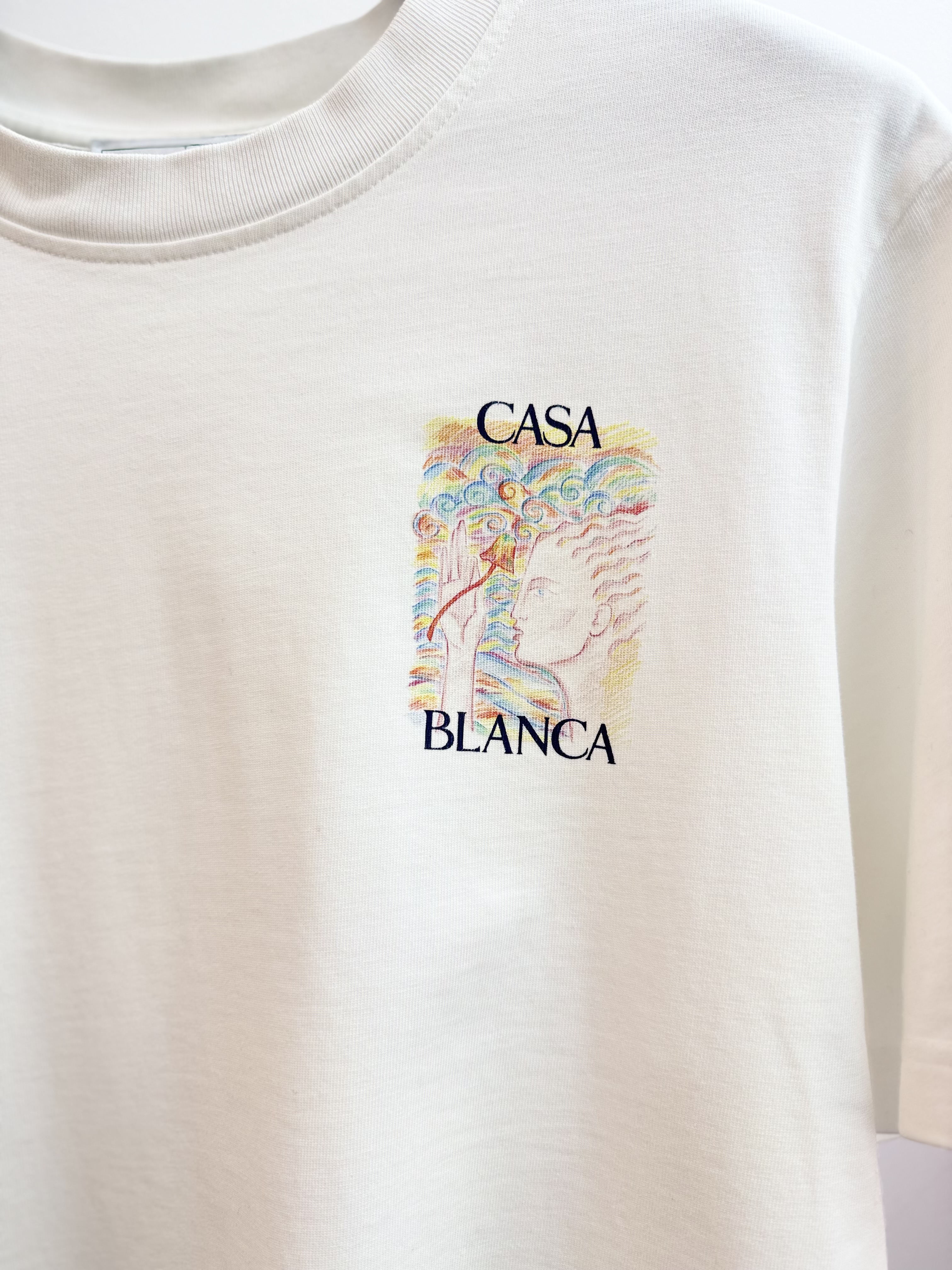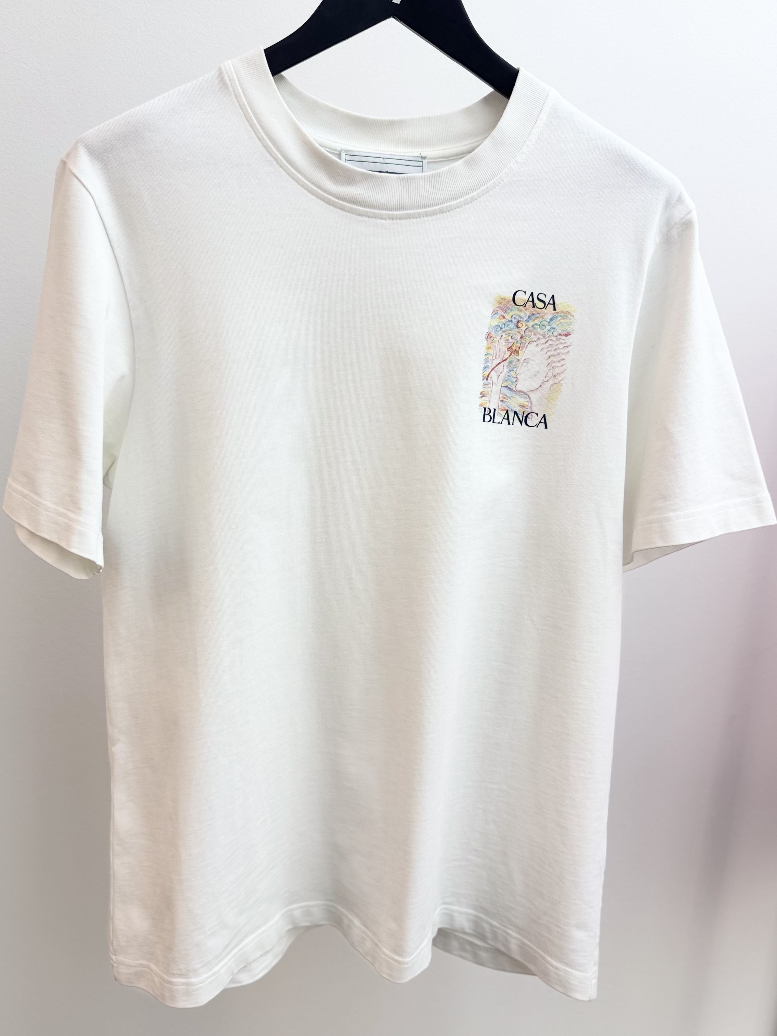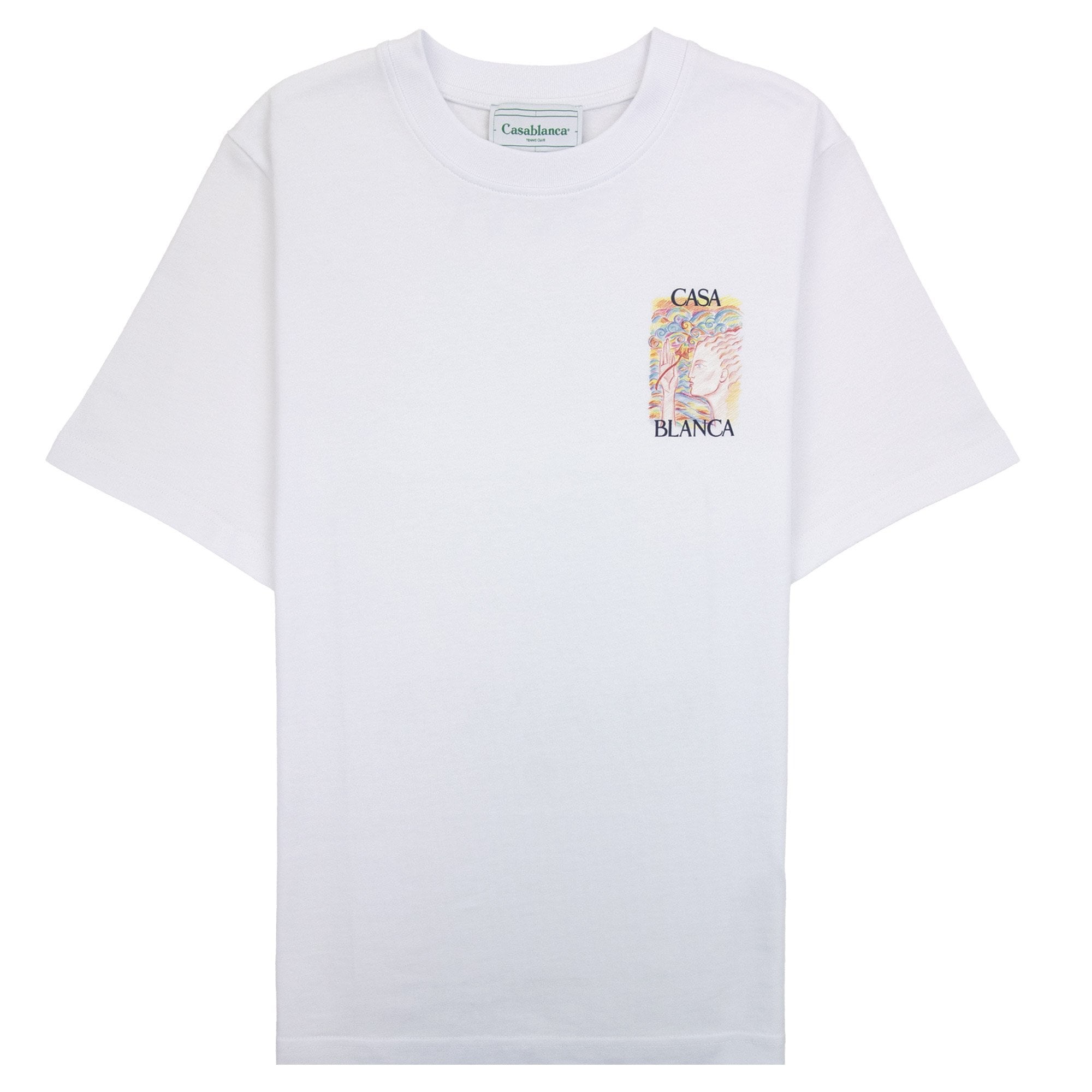 Crafted from soft cotton, it features a classic round neckline and short sleeves for a comfortable, relaxed fit. The design is adorned with a striking printed graphic on the chest, complemented by an enlarged version on the back, adding a unique and artistic touch. Perfect for pairing with jeans or tailored trousers, this T-shirt brings effortless sophistication to any modern wardrobe.