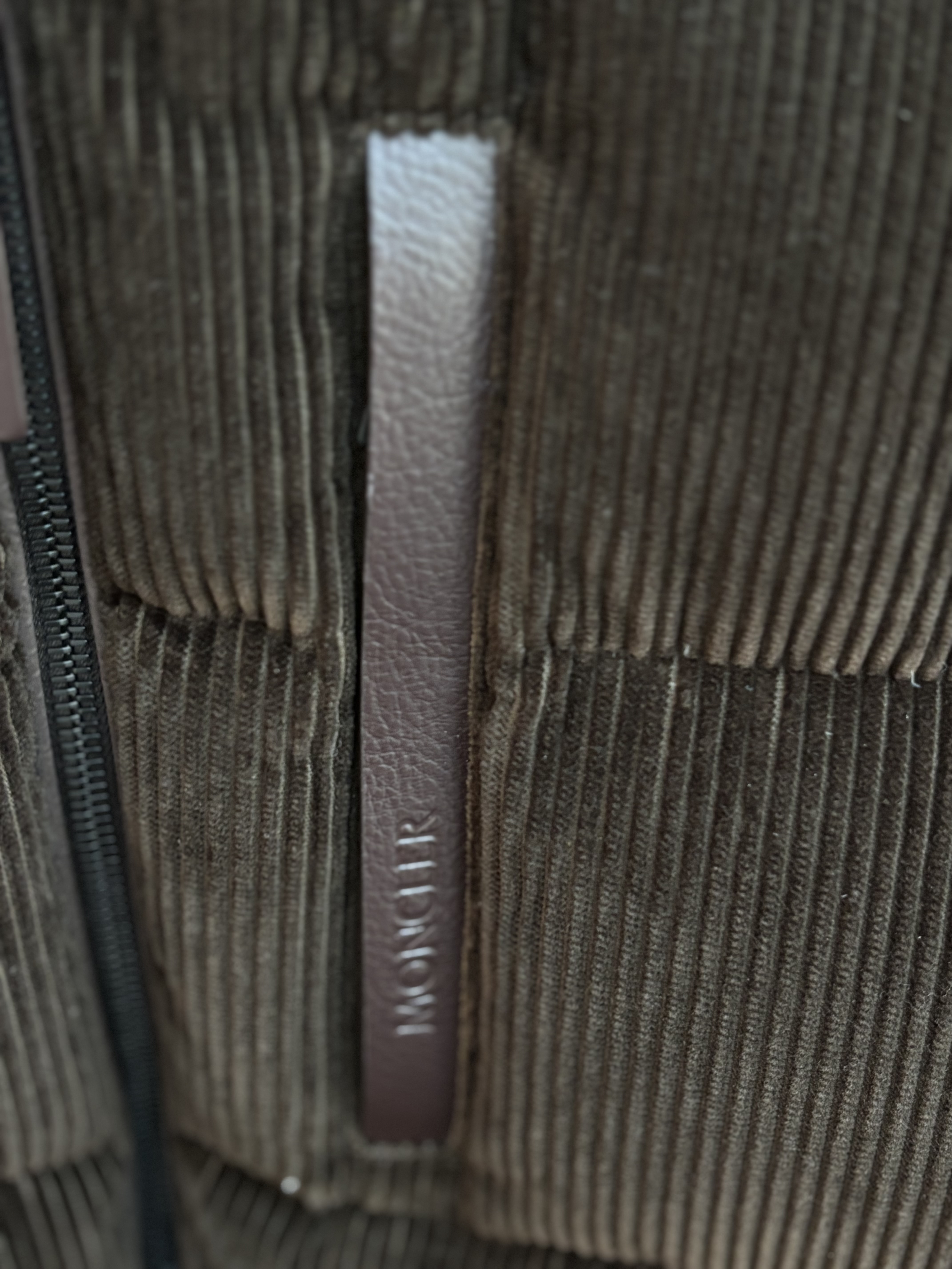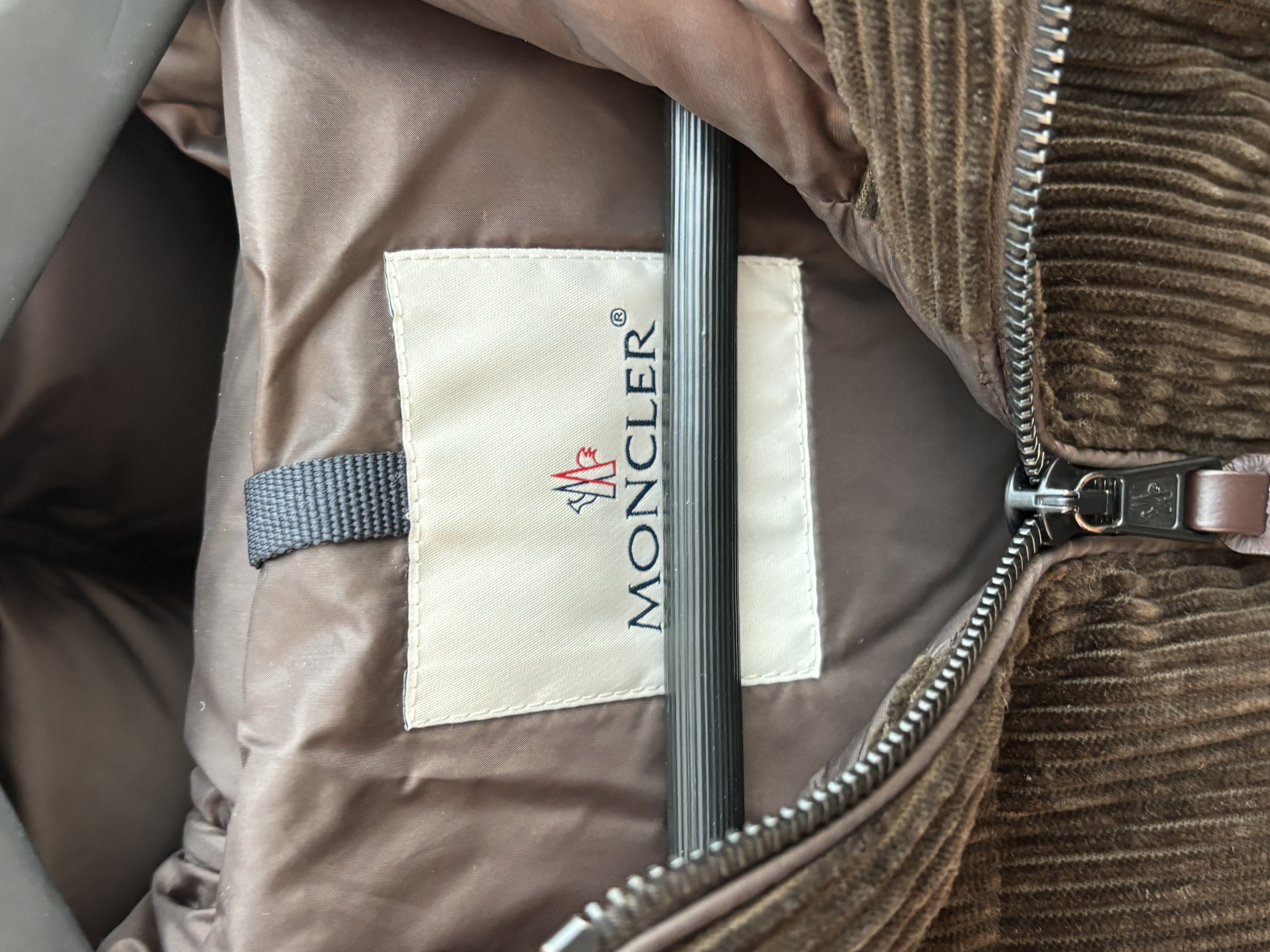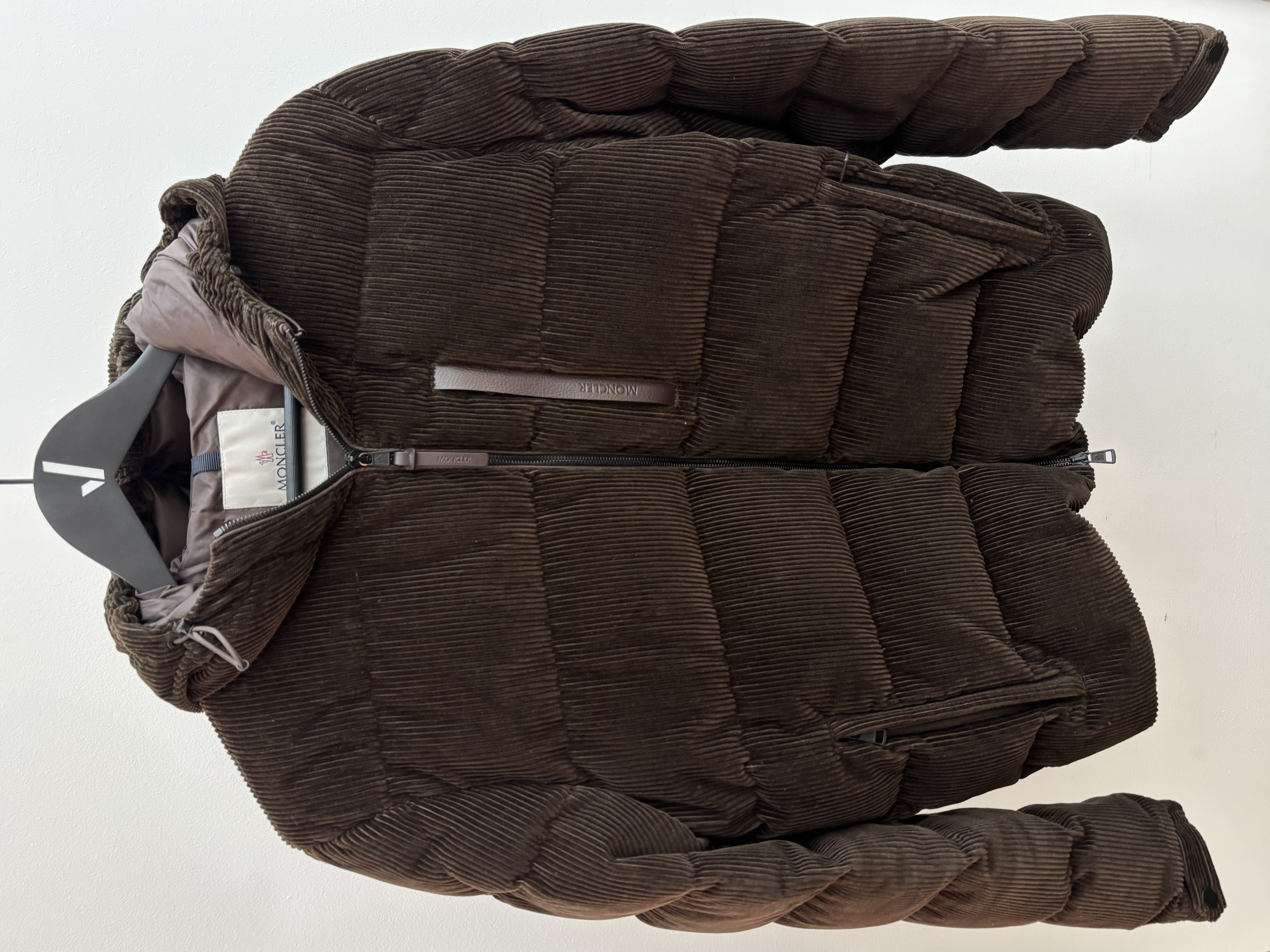 This pristine Moncler puffer jacket reimagines the brand’s iconic alpine heritage through a sophisticated lens, swapping traditional glossy nylon for a rich, textural brown corduroy. Engineered for ultimate warmth without the weight, it features a premium 100% down fill and a smooth polyamide lining that ensures effortless layering. While most pre-owned pieces show their history, this particular jacket arrives in exceptional condition with no signs of use, offering the rare chance to secure a sold-out luxury staple that feels brand new. Located in Slovenia, it represents a perfect blend of rugged durability and high-fashion utility, making it a standout investment for any cold-weather wardrobe.