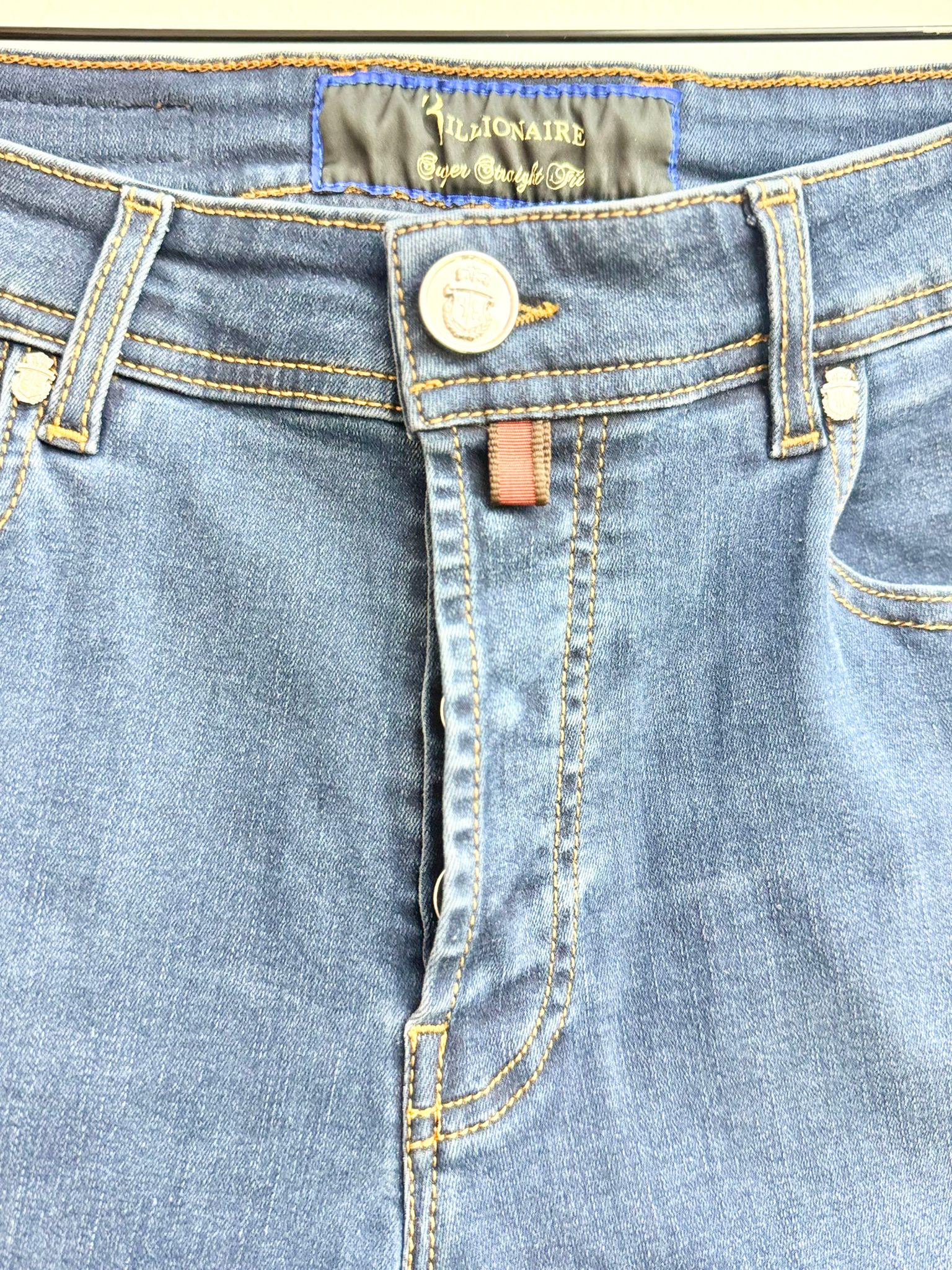 Crafted for the modern man who values both luxury and classic styling, these jeans offer a sophisticated take on everyday denim. Elevate your casual wardrobe with these premium Billionaire Super Straight Fit Jeans.