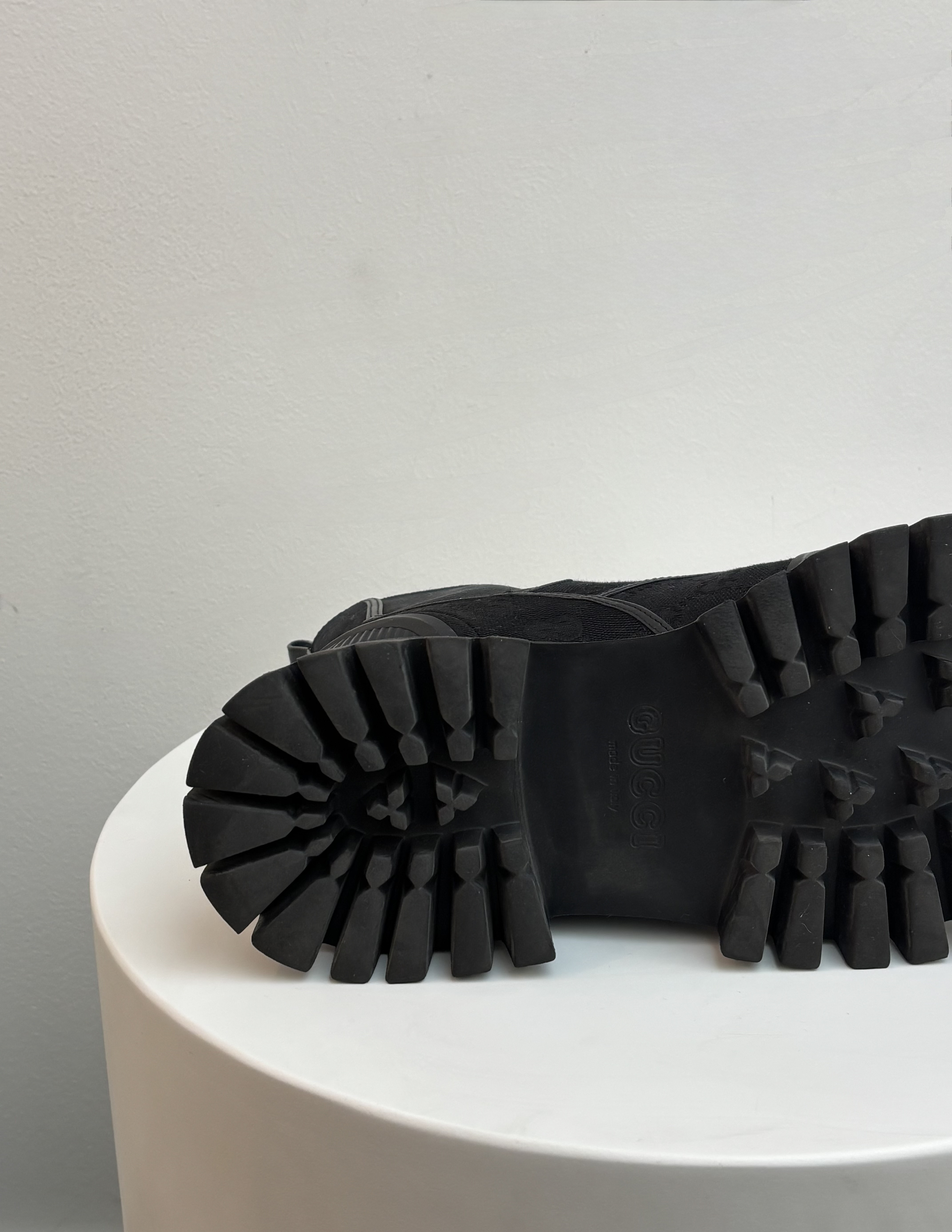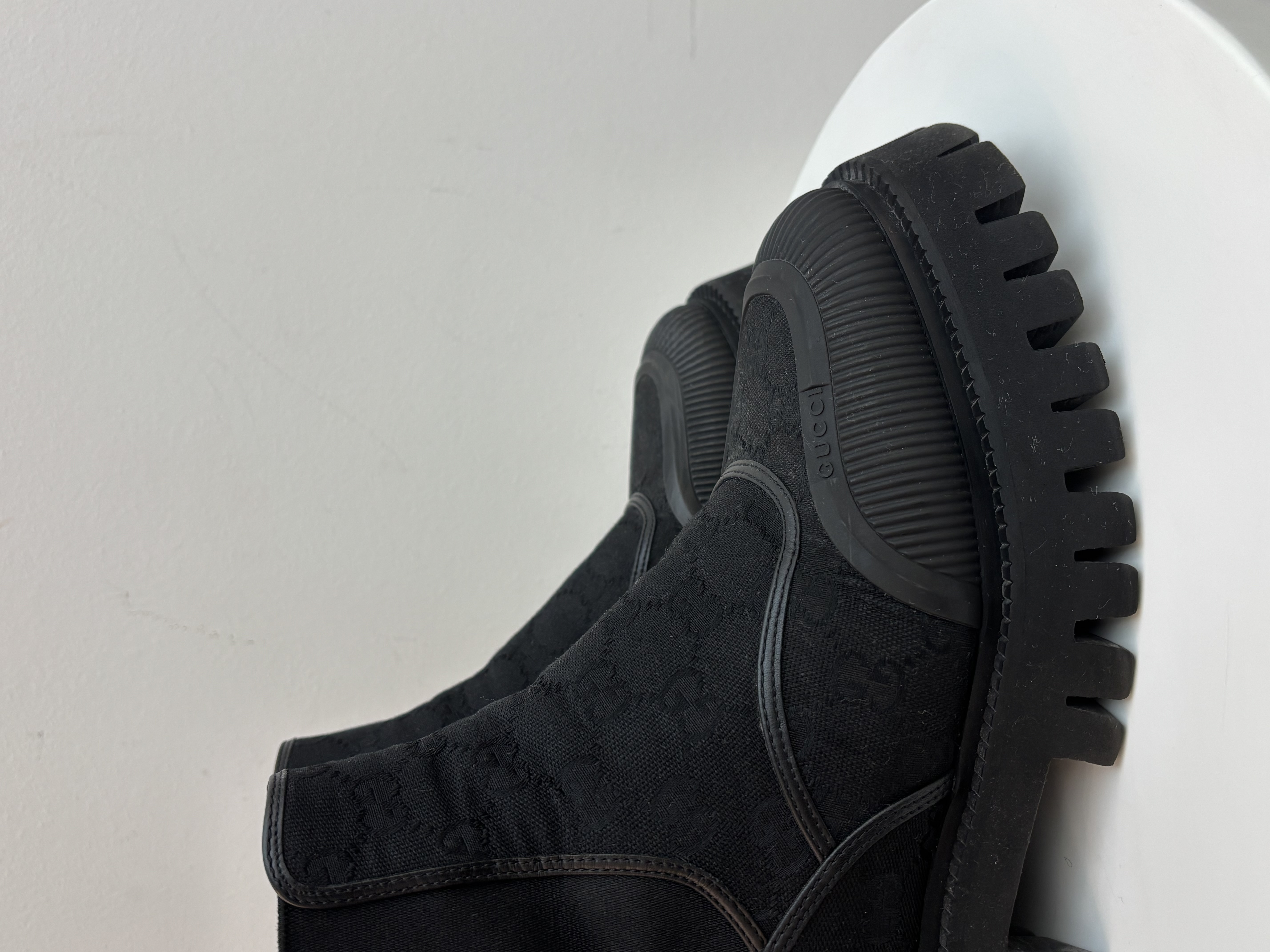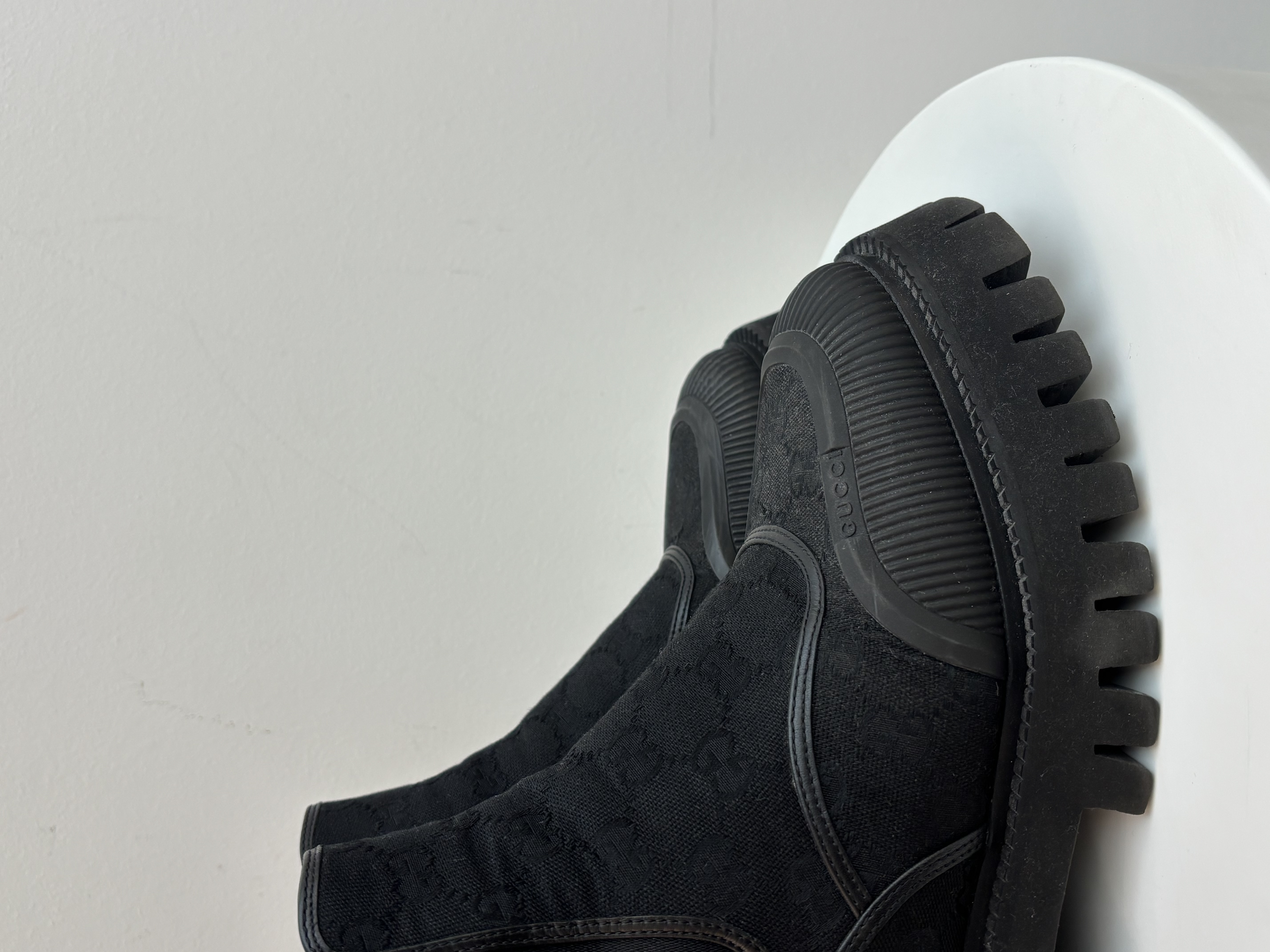 These Gucci GG Jacquard Canvas Ankle Boots perfectly blend high-fashion heritage with a modern, utilitarian edge. Designed for the style-conscious individual who doesn't want to sacrifice durability for luxury, these boots are a standout addition to any footwear collection.