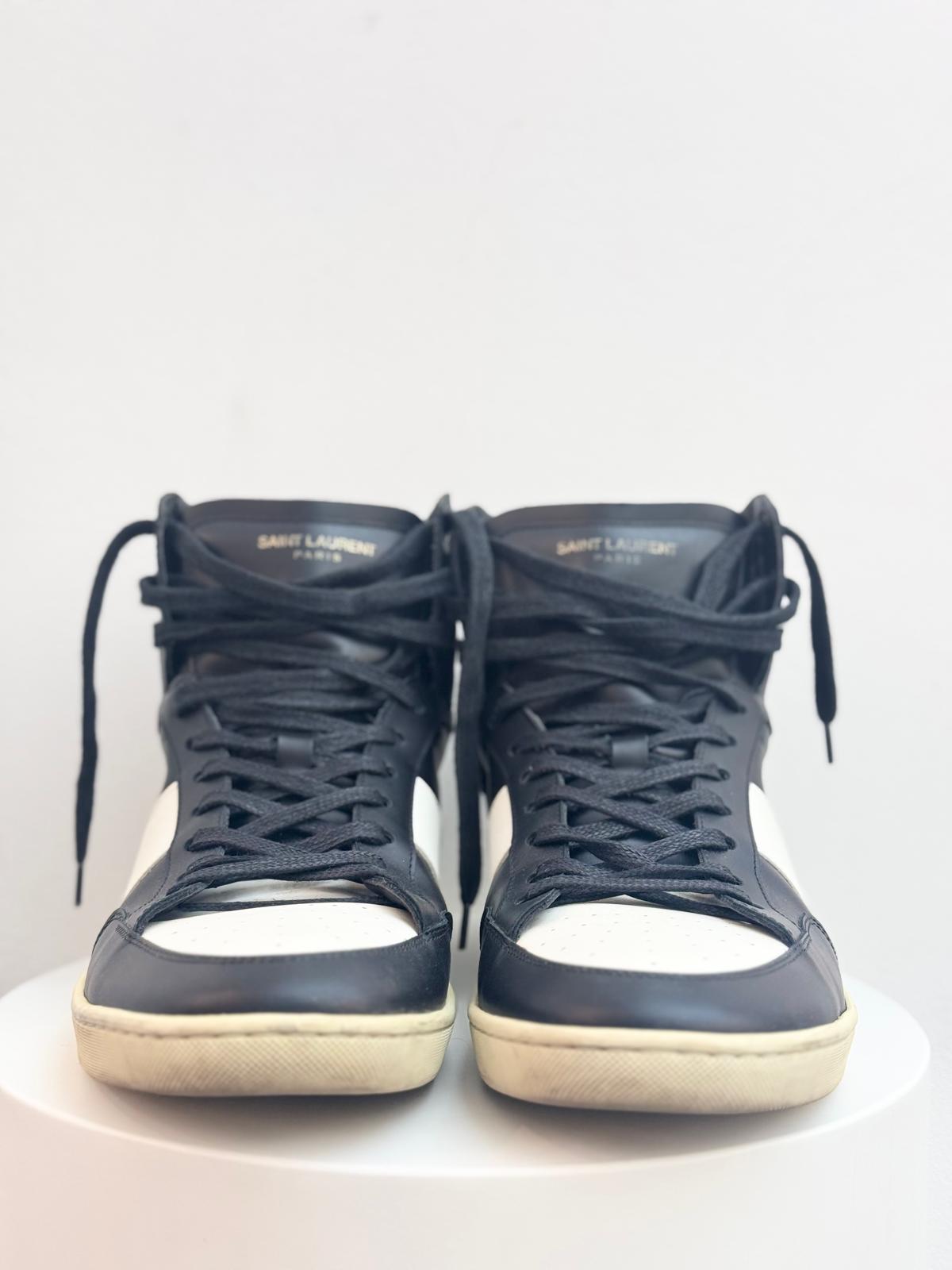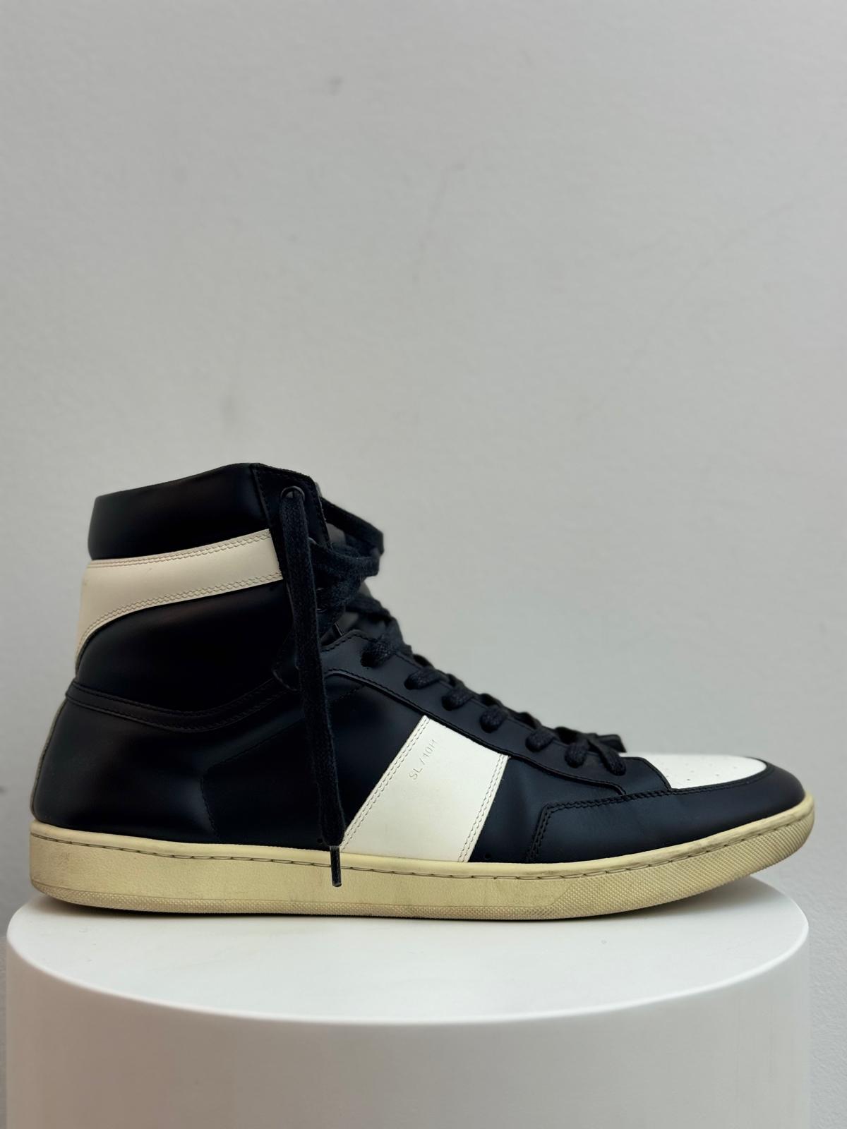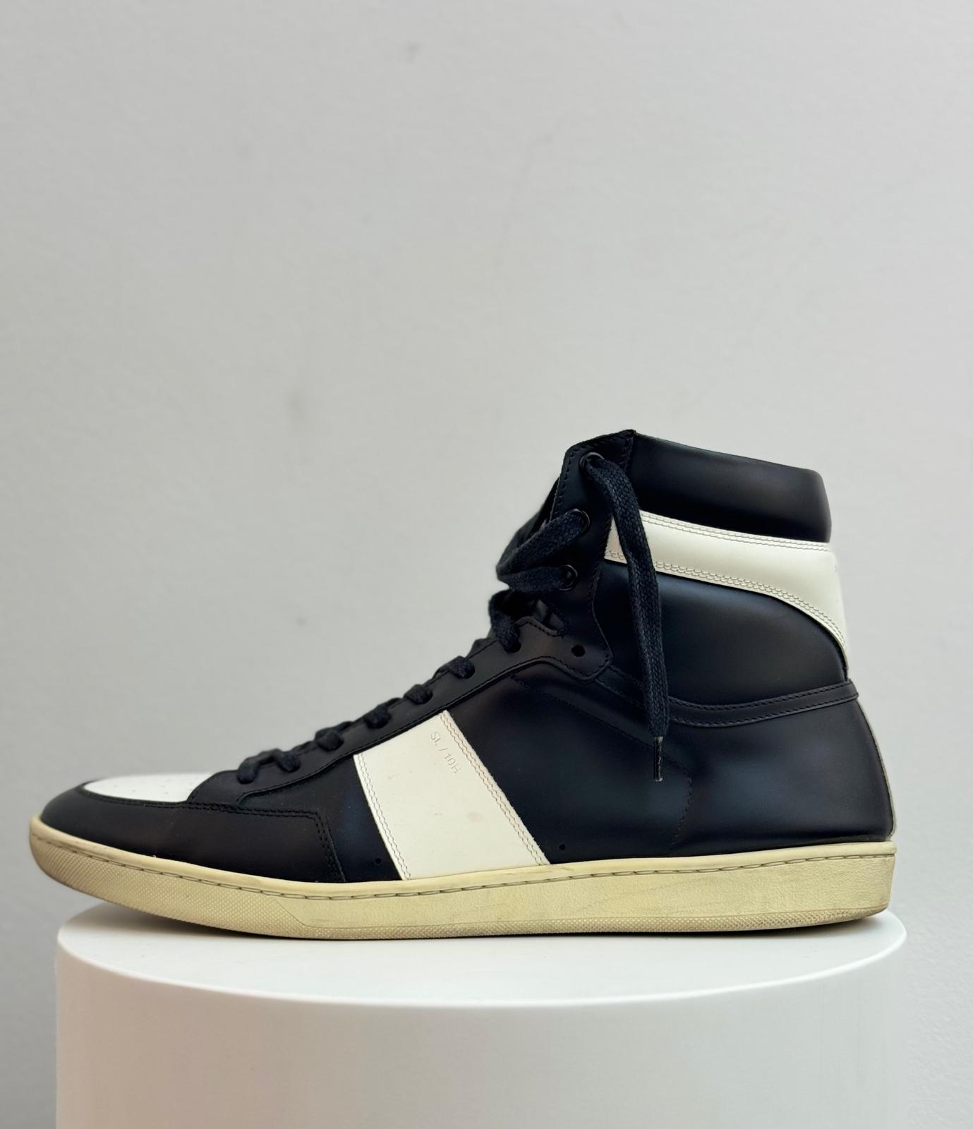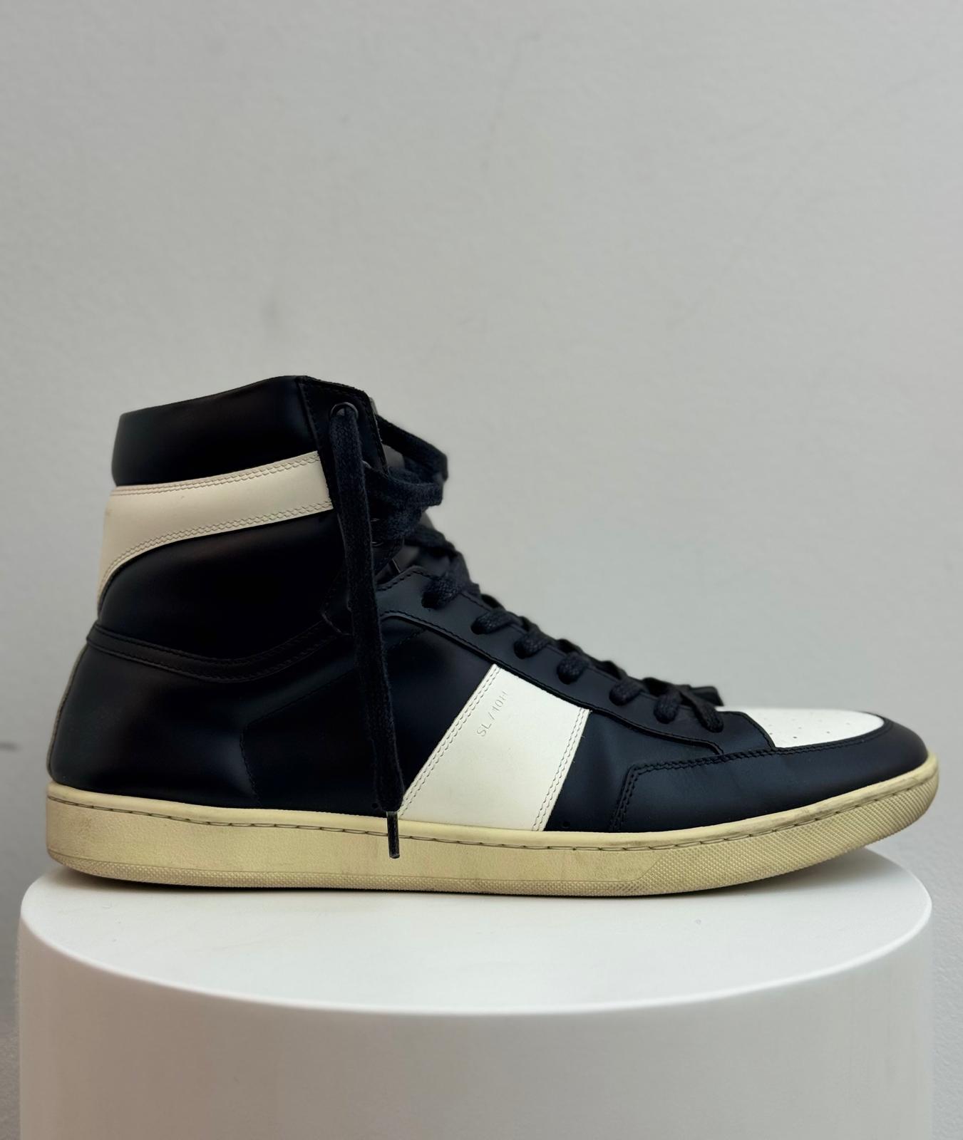 Saint Laurent SL‑10H High Top Sneaker “Black/White” – A sleek high-top sneaker featuring premium black leather uppers with white contrast accents, leather lining, and a durable rubber sole. Iconic Saint Laurent design with a minimalist yet edgy look, perfect for casual or streetwear style.
