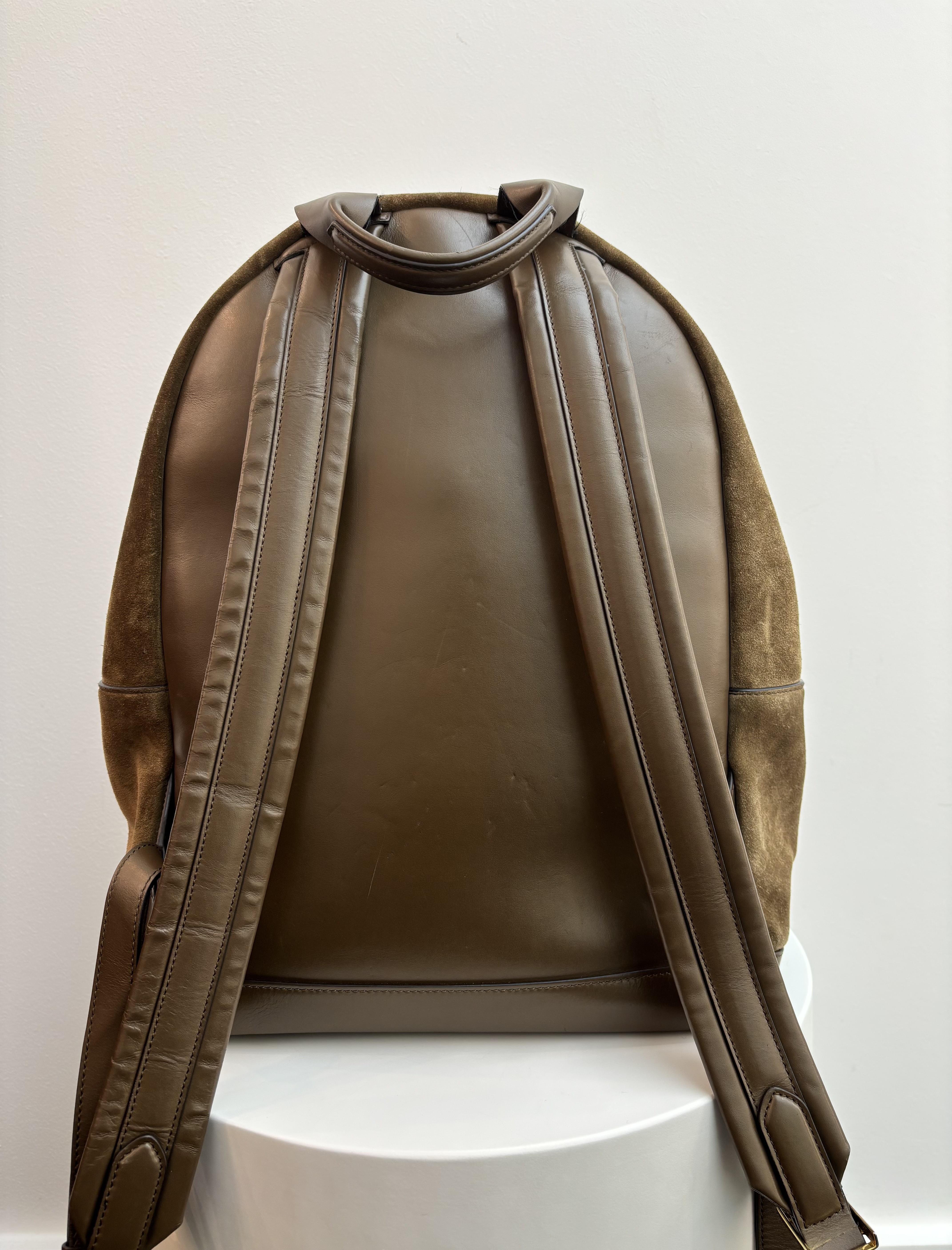 The Tom Ford Buckley Backpack represents a pinnacle of Italian craftsmanship, masterfully constructed from leather with contrasting smooth leather framing for a refined, architectural silhouette. This sophisticated piece features functional adjustable shoulder straps and a prominent front pocket highlighted by applied leather detailing, all accented by 100% brass hardware with opulent gold galvanization. Finished with the iconic Tom Ford embossed leather zip, this made in Italy essential seamlessly blends utilitarian practicality with the brand’s signature luxury aesthetic.