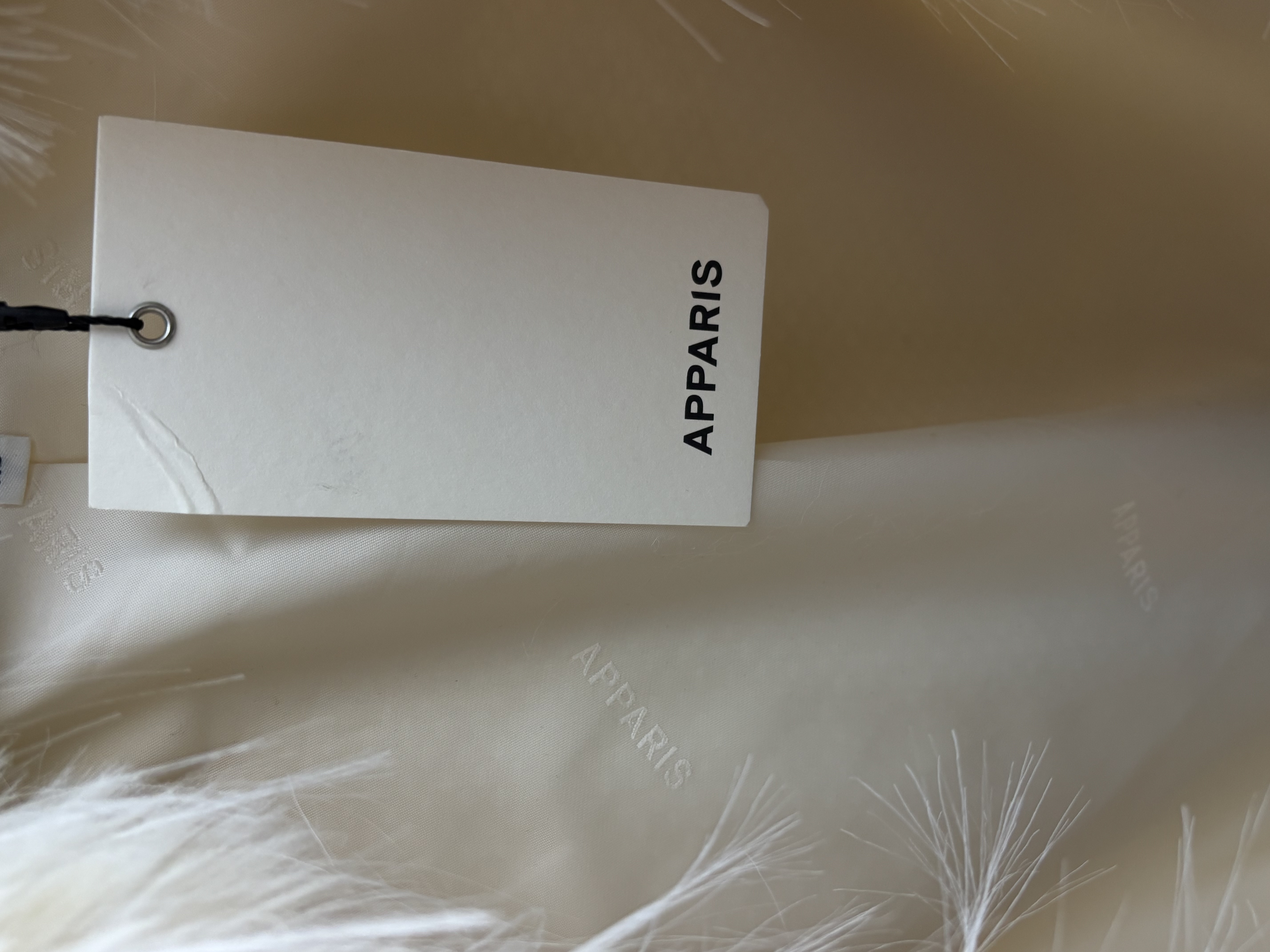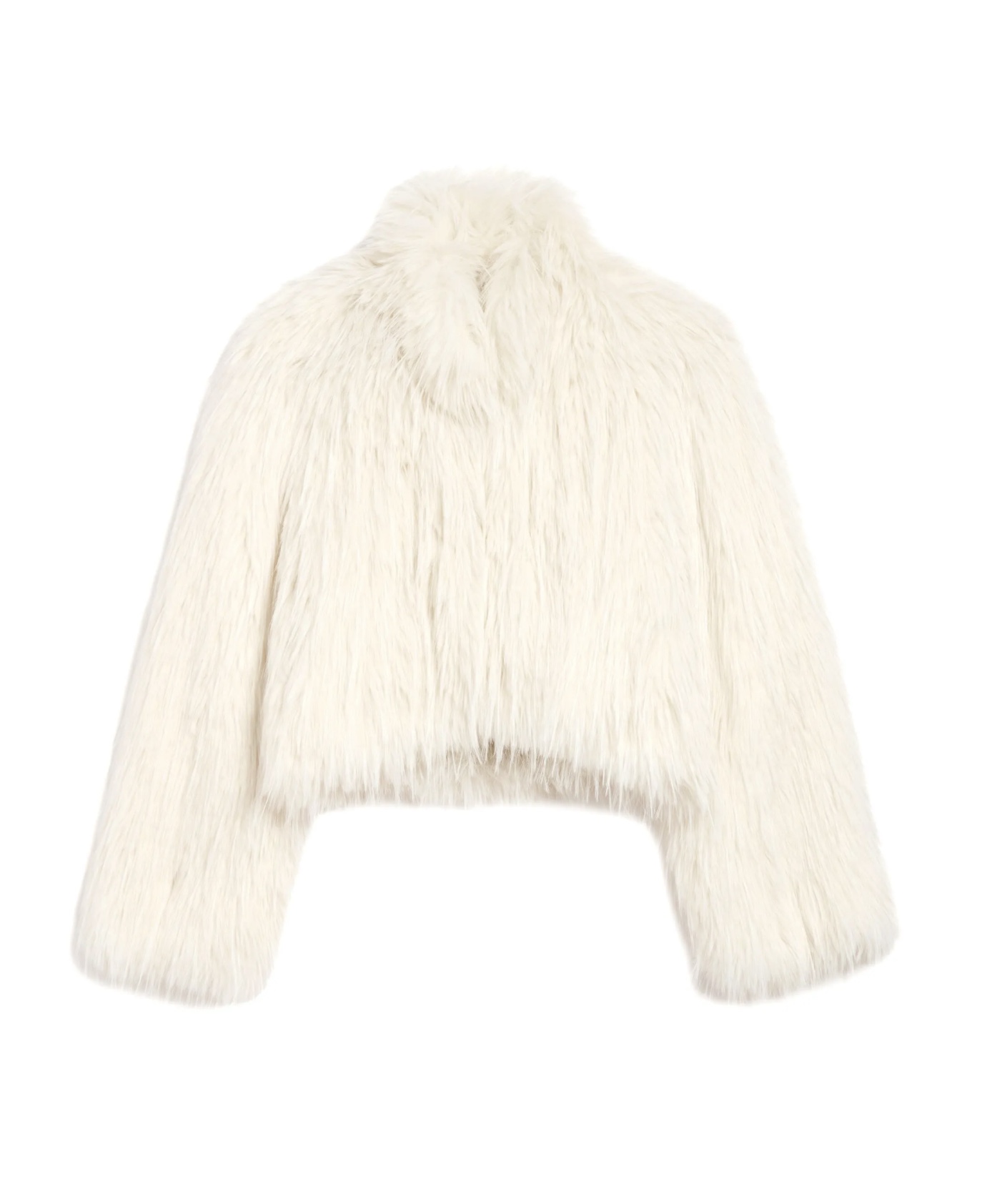 Apparis Ginette Faux Fur Jacket is a cropped, modern faux fur jacket crafted from 100% recycled polyester. Designed in a soft ivory tone, it features a plush texture, relaxed fit, and contemporary silhouette. A cruelty-free statement piece that combines luxury aesthetics with sustainable materials.