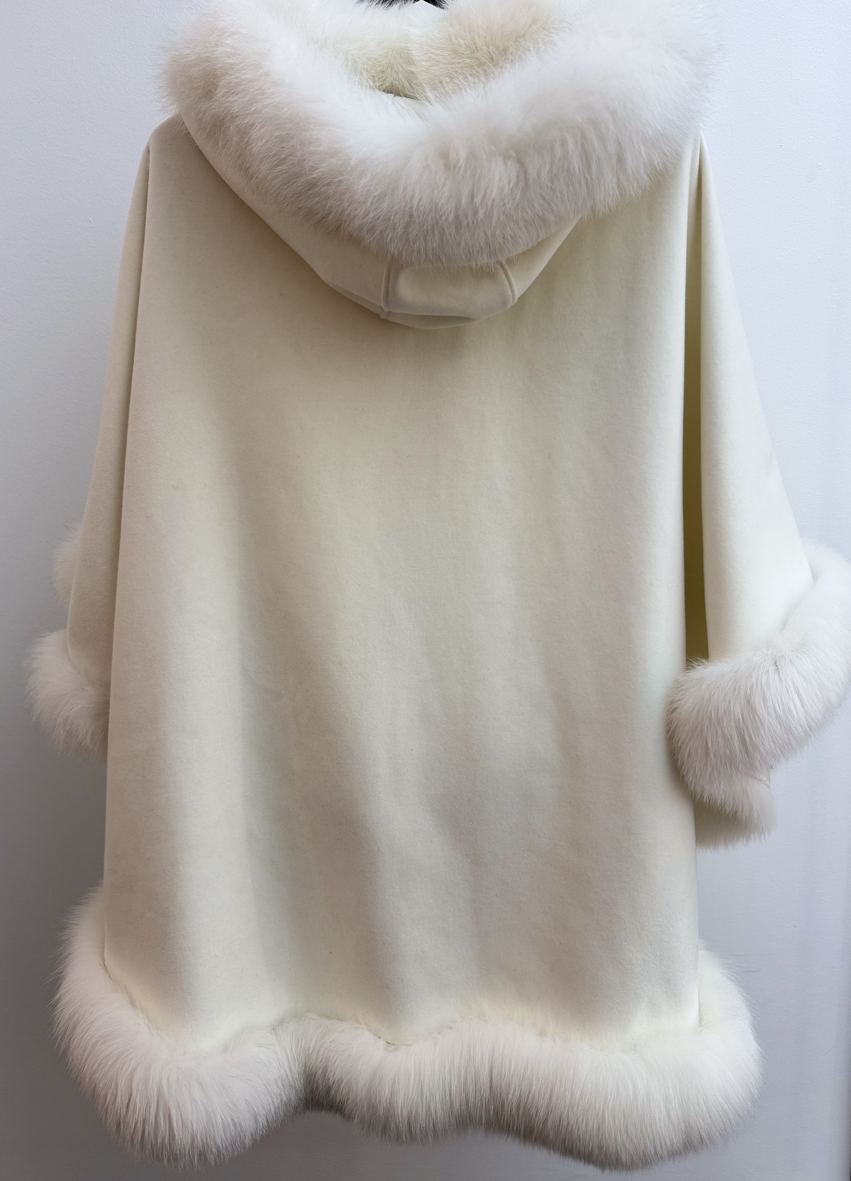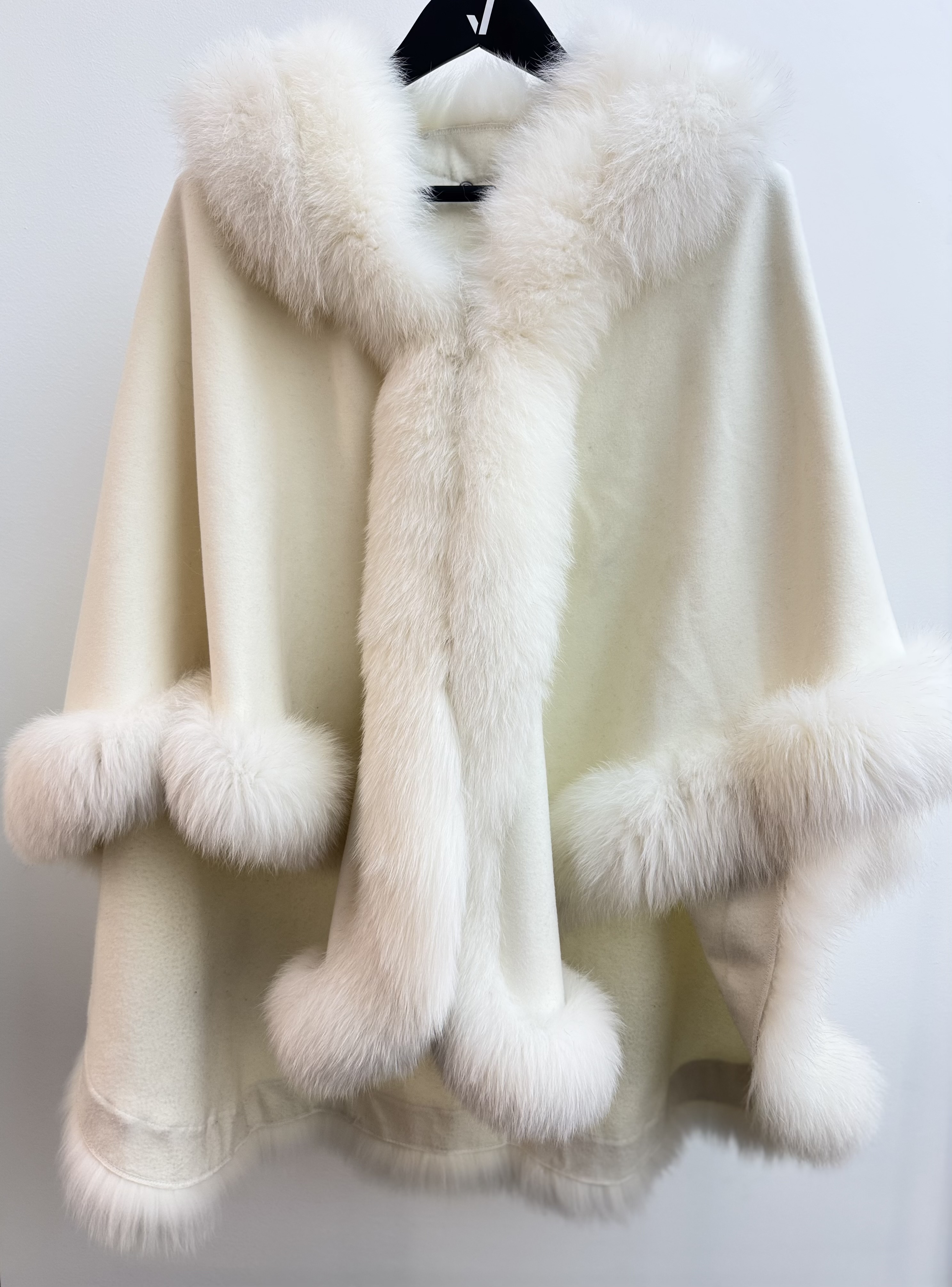 A truly one-of-a-kind piece, this Artisan Furrier Cashmere Cape exudes timeless luxury and craftsmanship. Made from sumptuously soft cashmere and finished with an opulent fur trim, it drapes elegantly for a sophisticated, statement-making layer that elevates any cold-weather look.
