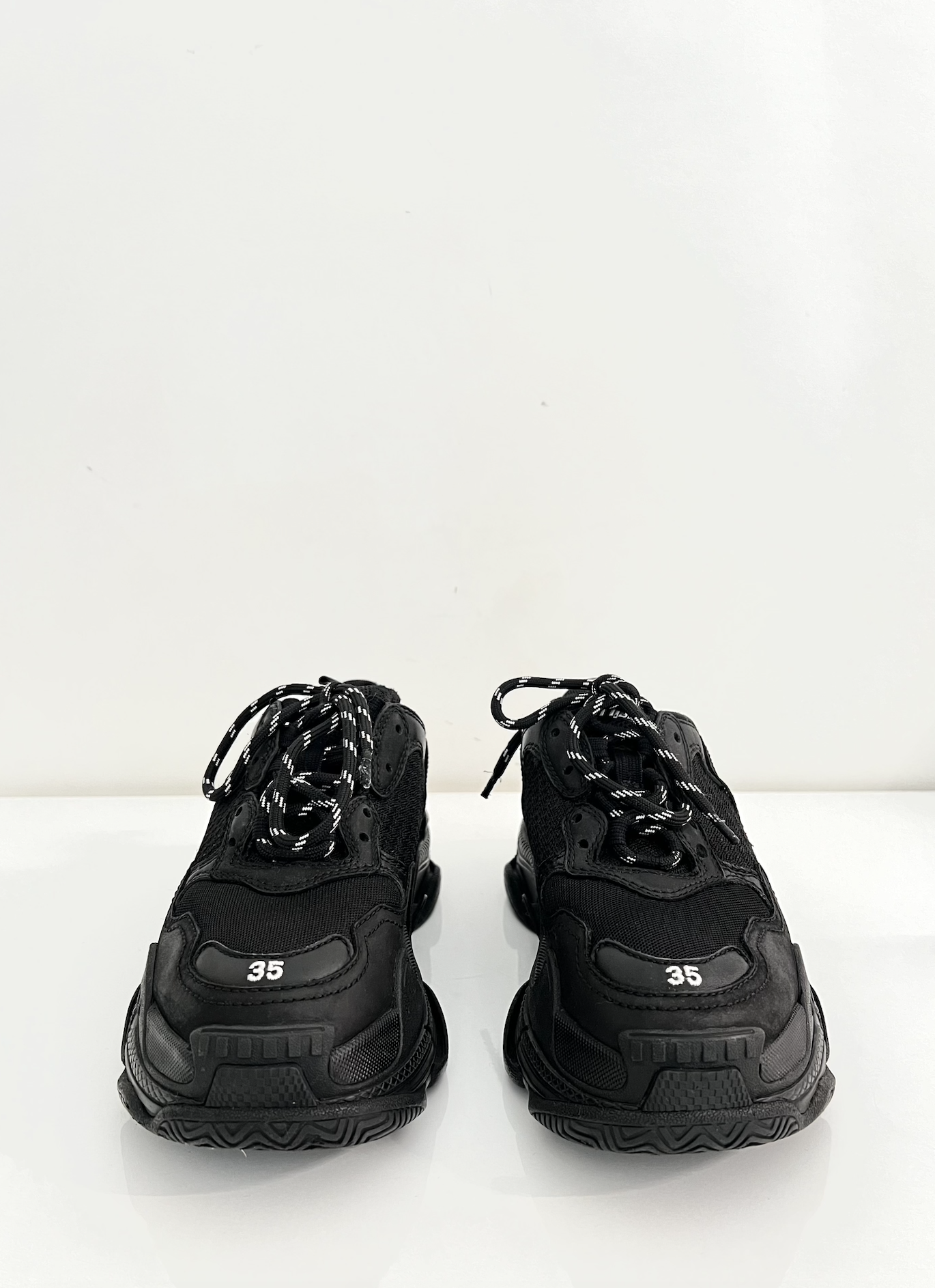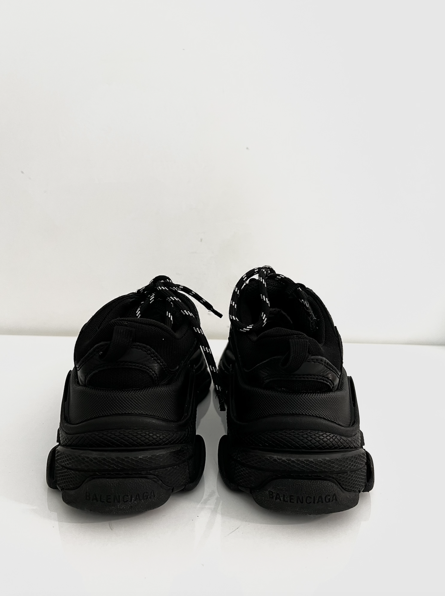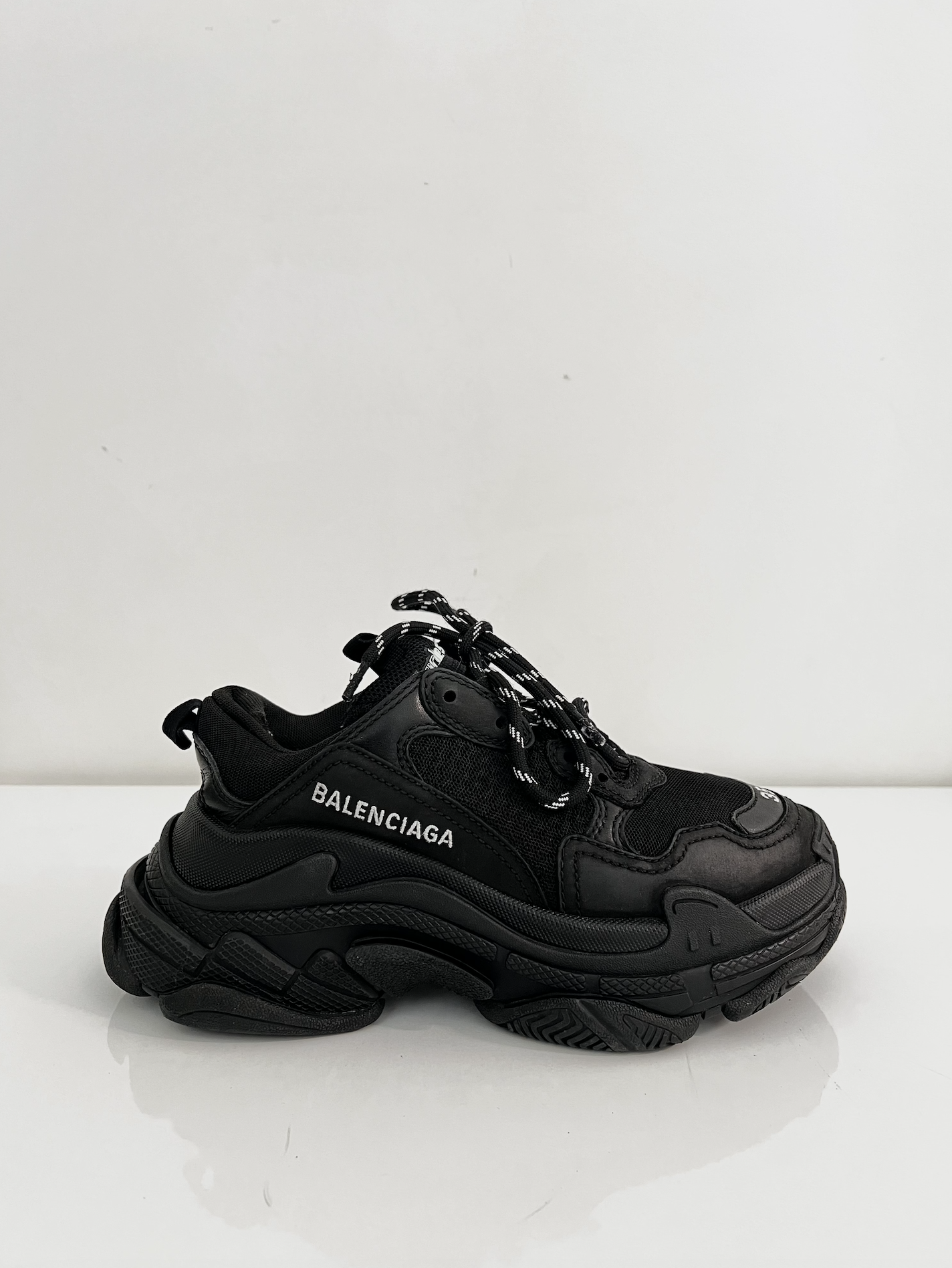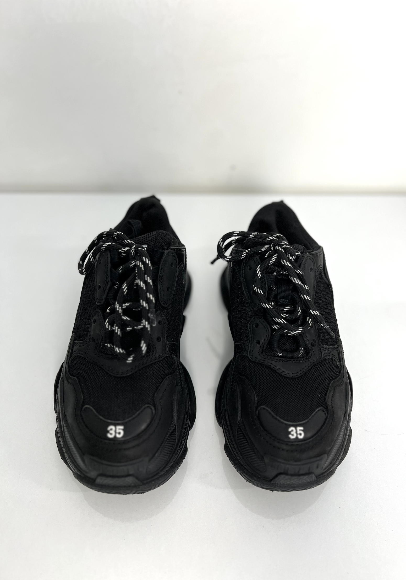 The Balenciaga Triple S Black sneakers blend bold, chunky design with unbeatable comfort, showcasing a layered sole for a standout look. Constructed from high-quality leather and mesh, they offer both durability and contemporary style. The sleek black hue makes them a versatile addition to any wardrobe.