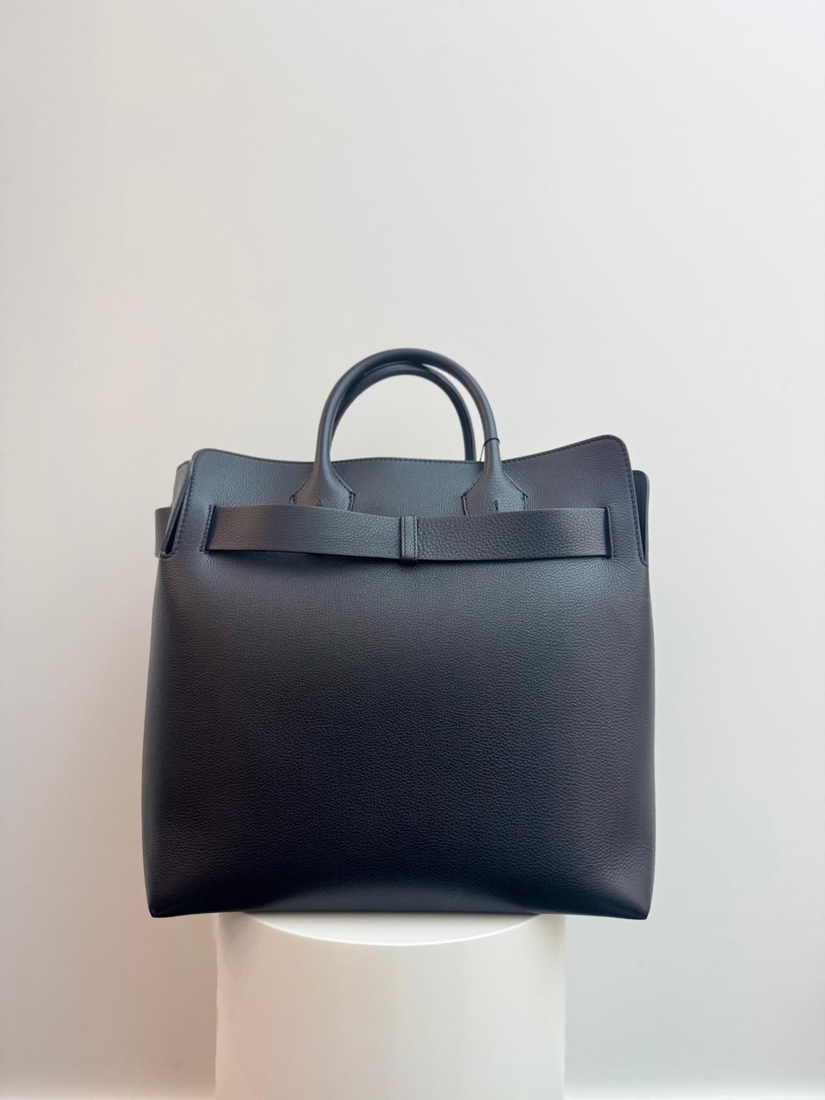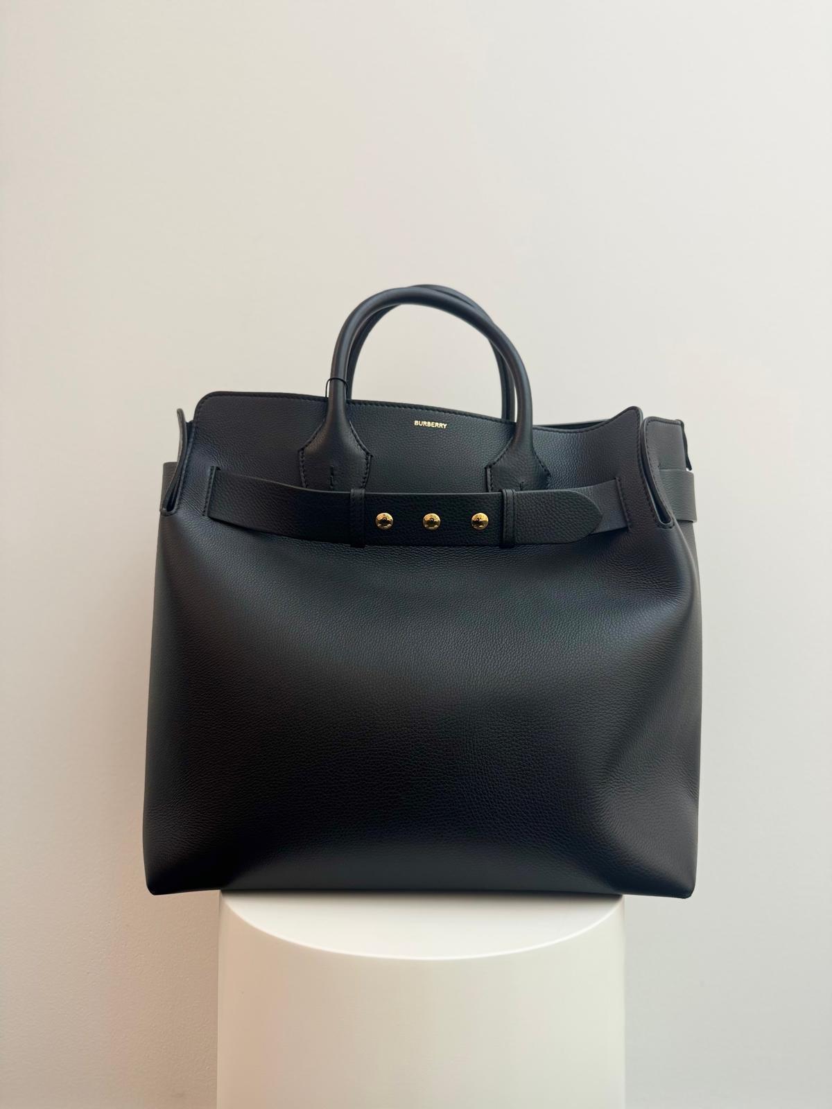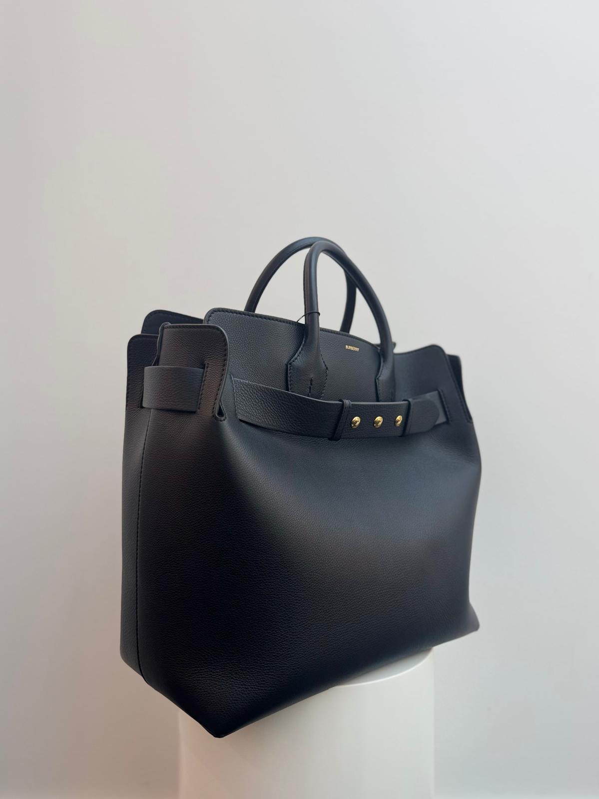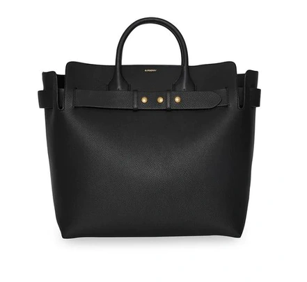 A triple-stud belted tote influenced by our iconic trench, panelled inside and out in supple two-tone leathers. Outer, trim, belt and linings. About the brand - In 1856, tailor's apprentice Thomas Burberry founded the British firm Burberry with a collection of outerwear. The house's most famous creation, the trench coat, was created for soldiers fighting in the WWI trenches. Fast forward 150 years, and today the brand is known for classically chic ready-to-wear, fragrances, timepieces, children's clothes, and more in addition to timeless trench coats. Its iconic check pattern is recognizable around the world as a mark of luxury.