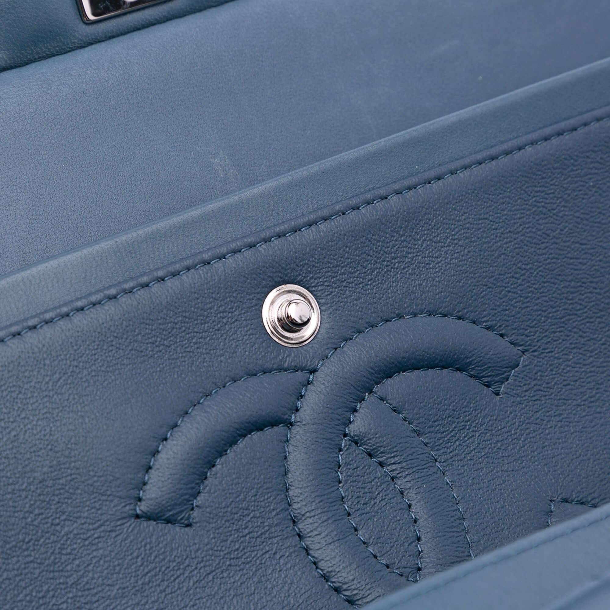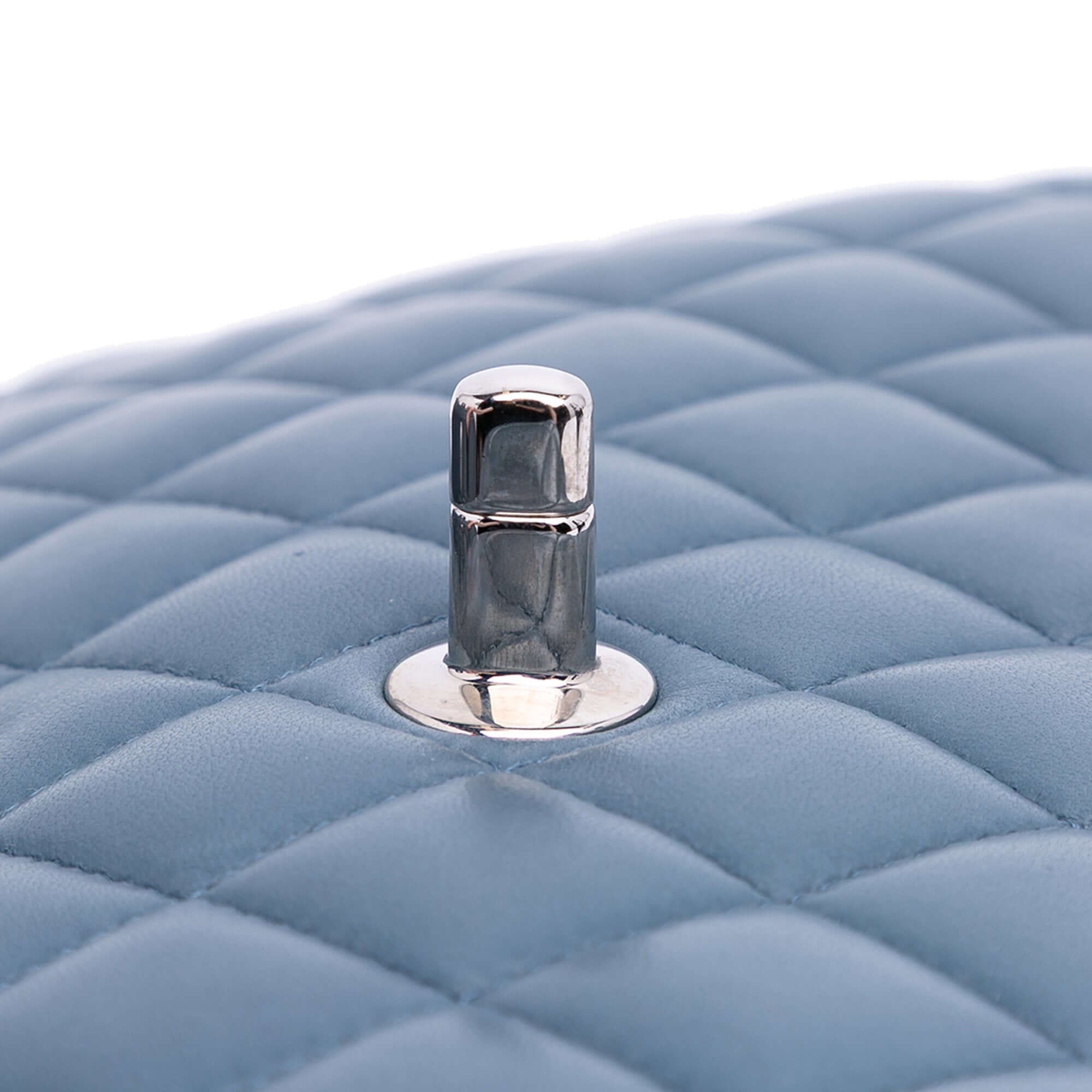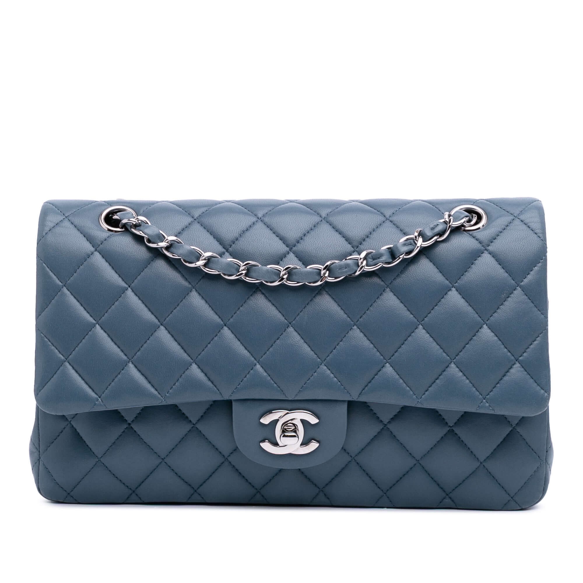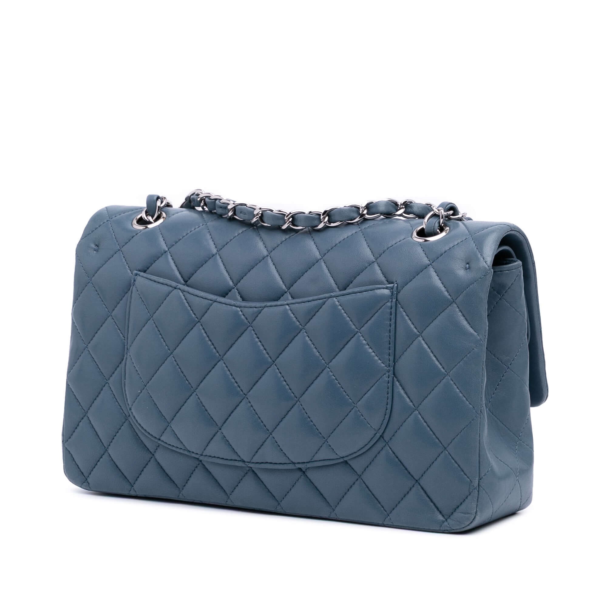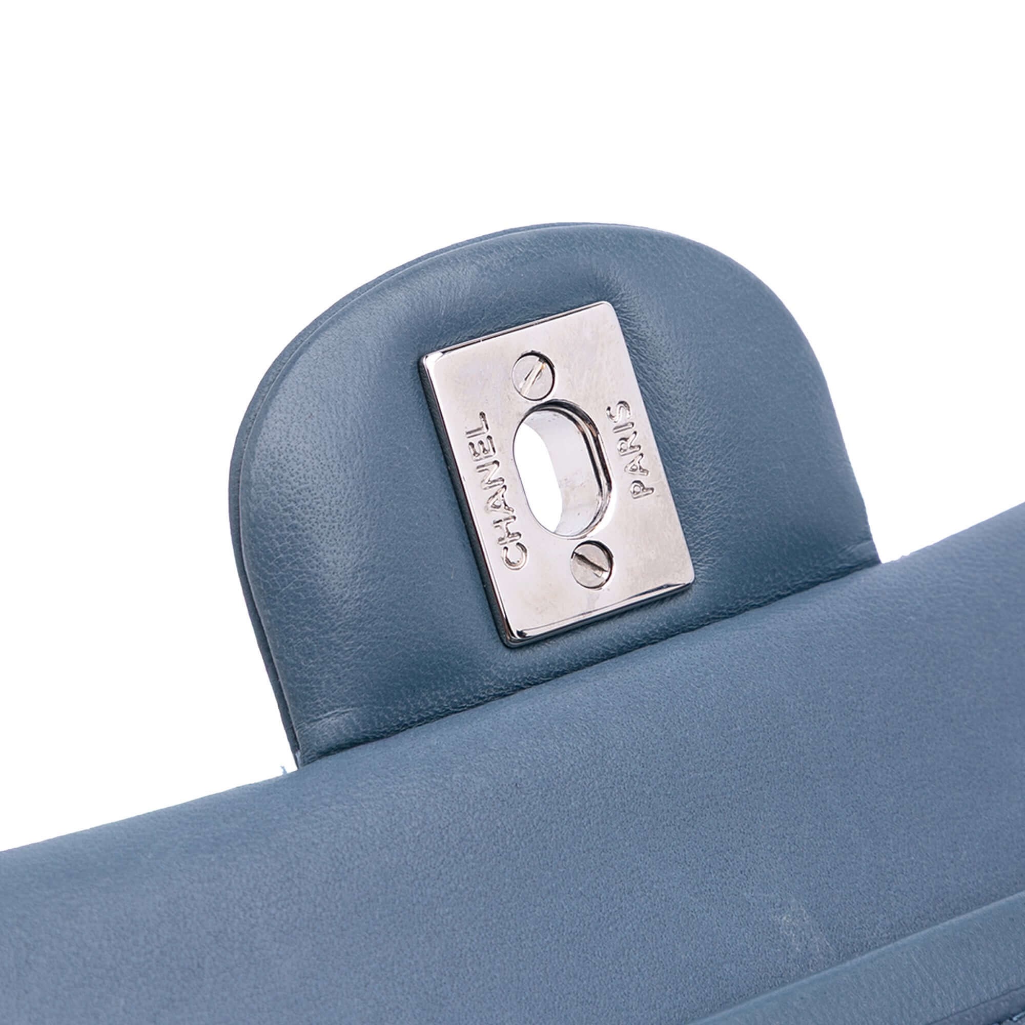 This Chanel Classic Double Flap Bag in soft blue quilted lambskin is a timeless icon of elegance and functionality. Crafted in France (2012–2013), it features leather-woven chain straps, double front flaps, and the unmistakable interlocking CC twist-lock closure. Inside, you’ll find multiple compartments, including an interior zip pocket, slip pocket, and hidden flap, making it both chic and practical. A slip pocket on the back allows for easy access to essentials. The piece shows light signs of wear consistent with age and use but retains excellent structure and color.