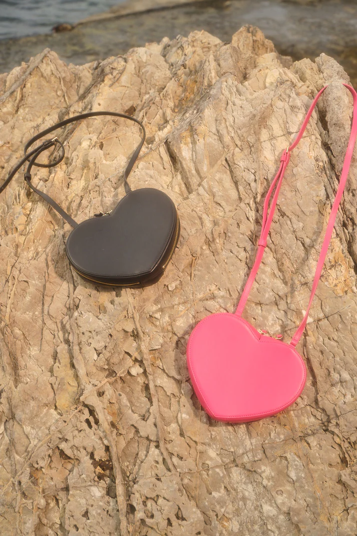 Tag your love! Our favourite.. Fully lined heart shaped cross body bag with an adjustable long strap and expandable inside with zip closure. Can't imagine how much you can put in it.