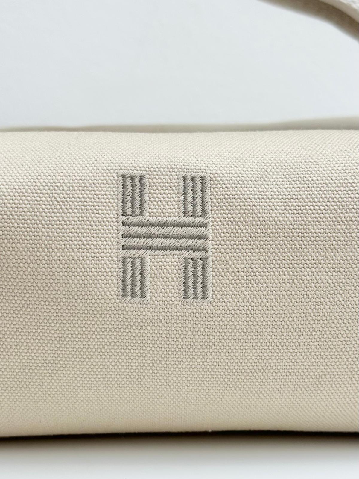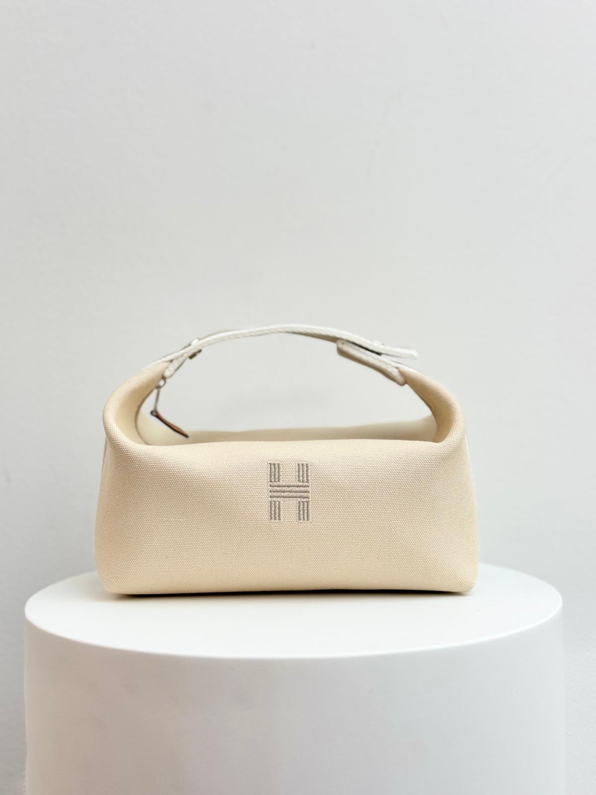 The Bride-a-Brac case is here - Functional as ever, it can be hung in your bathroom or closed in a number of different ways using the snap fastener. Case in cotton canvas 100% cotton, lining in herringbone canvas 100% cotton, strap in polycotton, embroidered "H" motif 96% polyester, 4% ceramic and three interior pockets Includes a handle for hanging that closes in multiple ways. Made in France, designed by Hermès Studio.