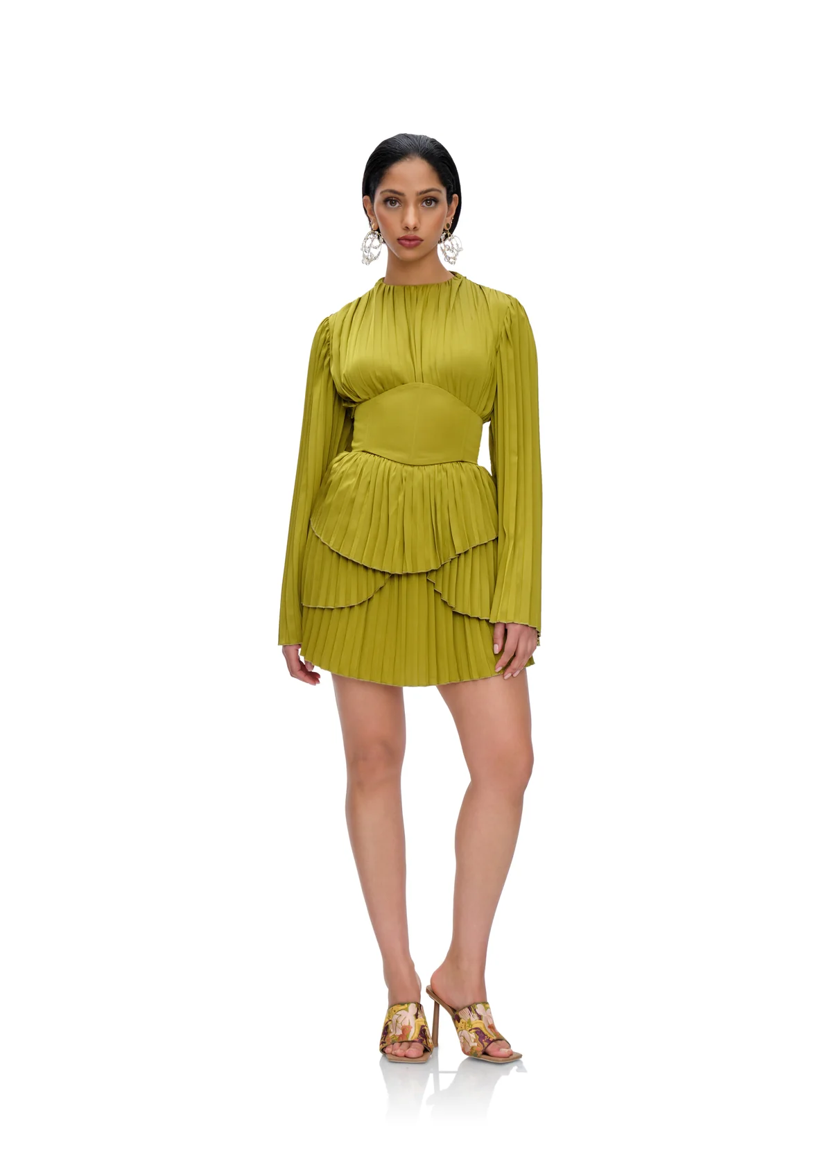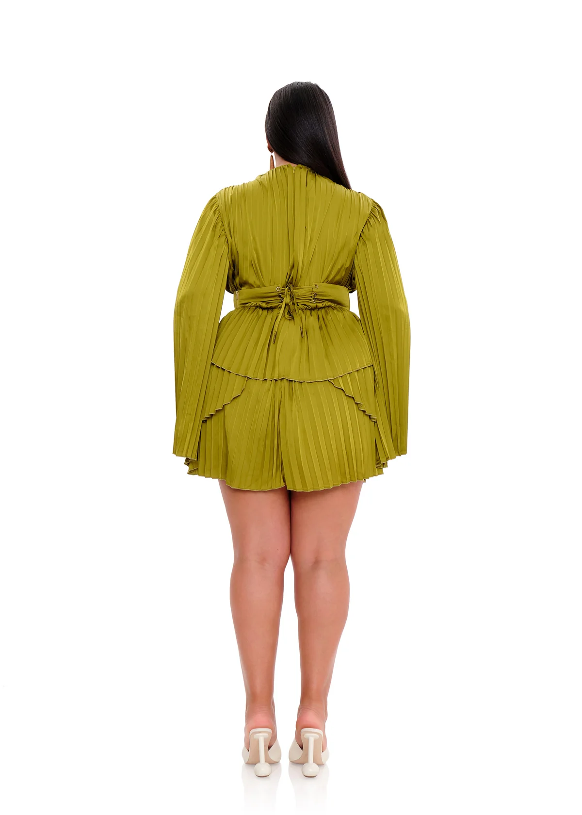 Introducing the Lenti Pleated Mini Dress, where sophistication meets playful allure. Made with premium satin fabric, draping your silhouette in silky-smooth comfort that's as indulgent as it is stylish. The corset belt cinches at the waist, creating a flattering hourglass silhouette while adding a touch of drama and allure to your ensemble. That's not all – hidden shorts provide added confidence and comfort, allowing you to move with ease and grace as you conquer the day or dance the night away. Whether you're attending a cocktail party, a romantic dinner, or a chic soirée, the Lenti Pleated Mini Dress ensures you make a statement with every step.