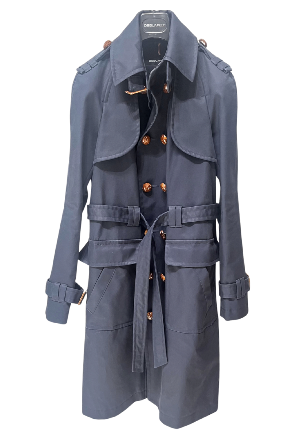 The Dsquared2 Women's Dark Navy Trench coat offers a refined, feminine silhouette with a timeless appeal. Its deep navy shade and elegant tailoring make it a versatile choice for elevating any outfit.