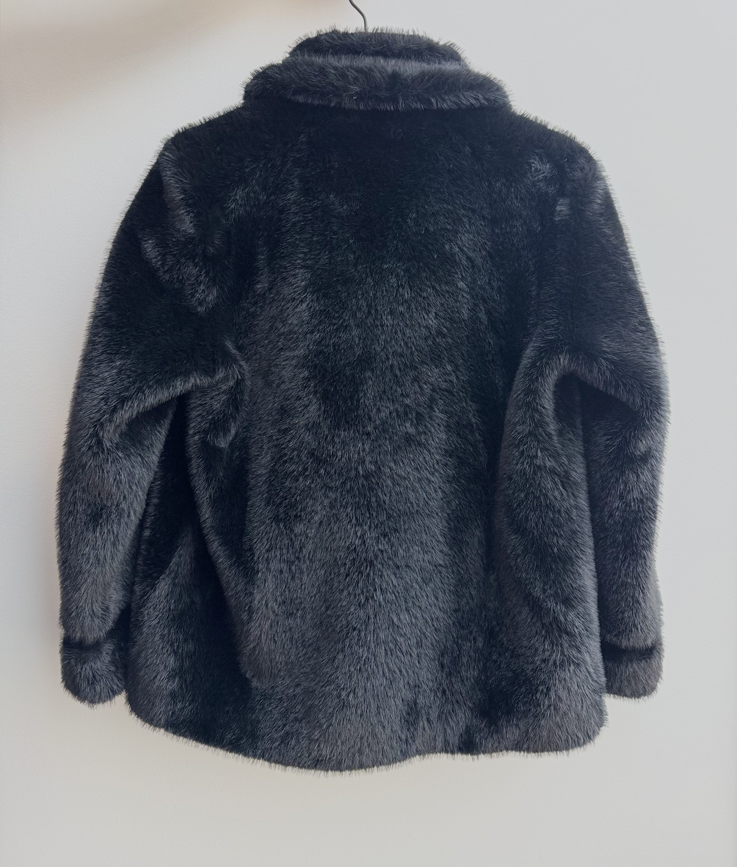 This sophisticated short faux-fur coat combines timeless elegance with a modern, straight-cut silhouette, making it a versatile staple for any luxury wardrobe. Featuring a classic lapel collar and a distinctive double-breasted button closure, the jacket is elevated by tonal decorative trims and the signature Oval T logo plate on the reverse. Designed with both style and functionality in mind, it includes long sleeves and discreet side pockets, offering a plush feel crafted from high-quality 100% polyester. For a chic, curated look, pair this statement piece with straight-leg denim, a romantic silk blouse, and polished leather ankle boots.