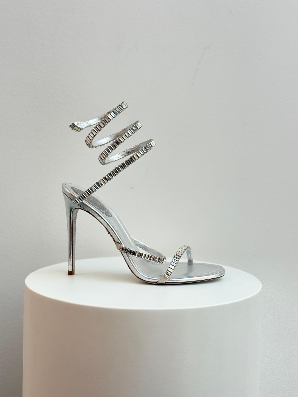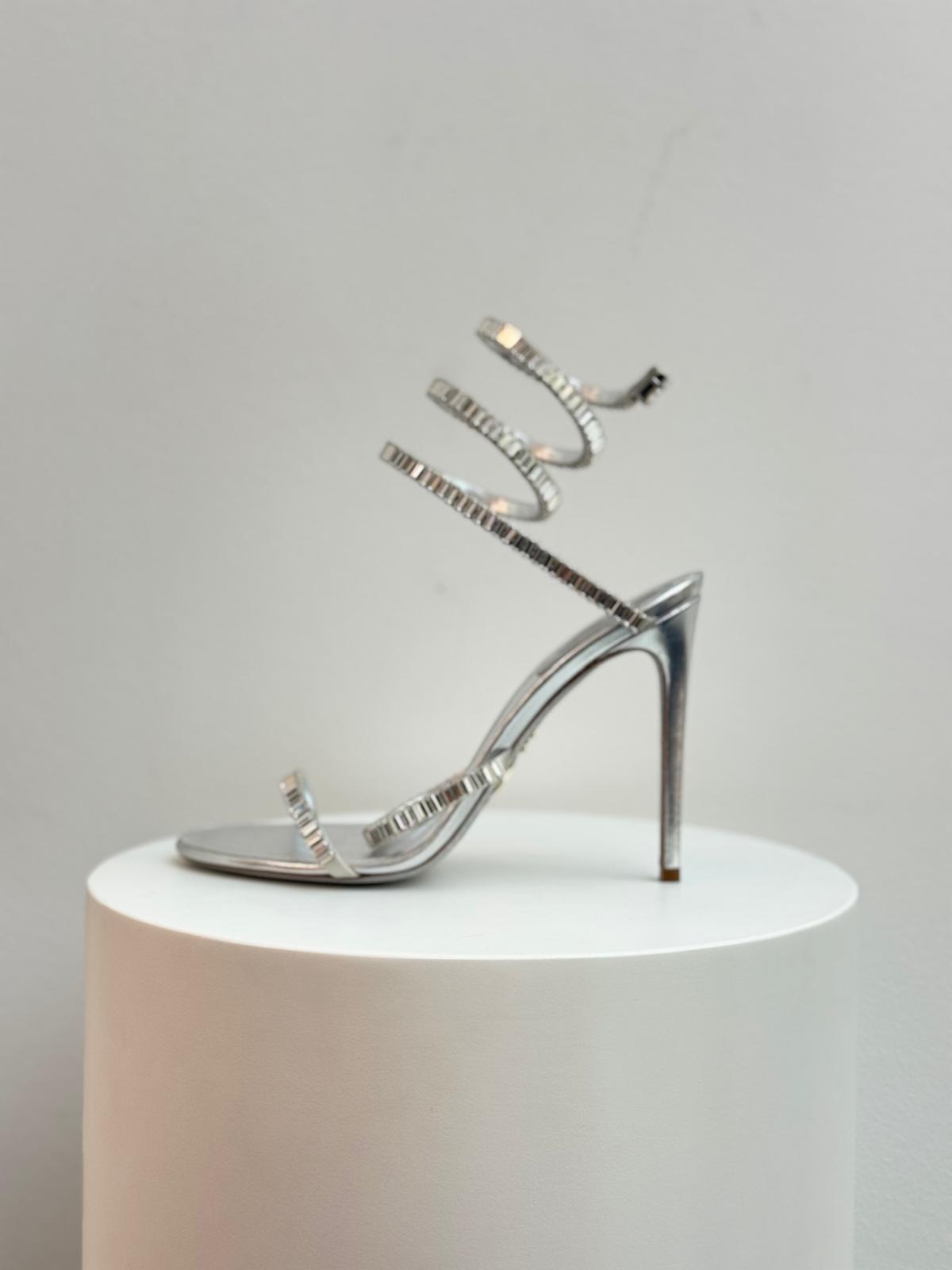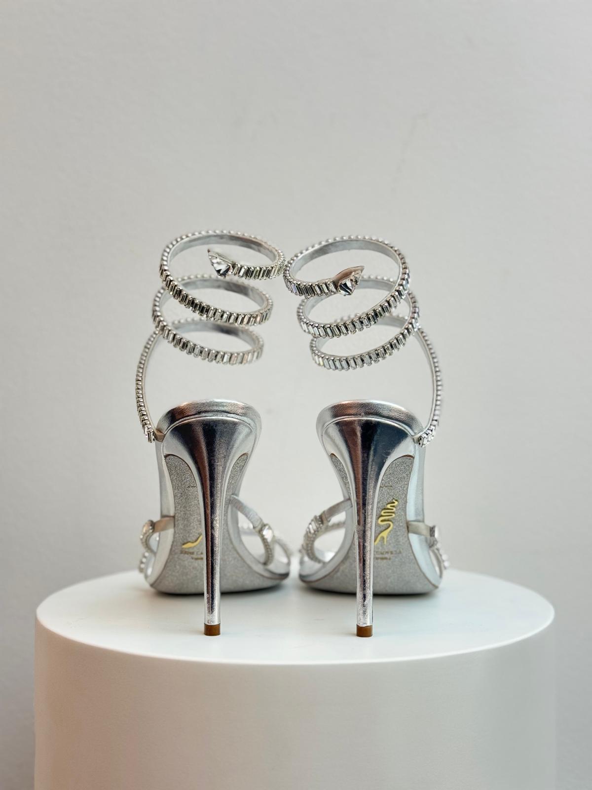 Step into luminous elegance with the René Caovilla Patent Calfskin Lace-Up Sandals in Silver, crafted to captivate from the very first glance. Their high-shine patent calfskin finish catches the light beautifully, while delicate lace-up straps wrap the ankle for a refined, feminine look. The brand’s signature shimmering sole adds a touch of enchantment to every step. Perfect for evening events or elevated everyday glamour, these sandals turn any outfit into a statement. Indulge in the artistry of true Italian luxury.