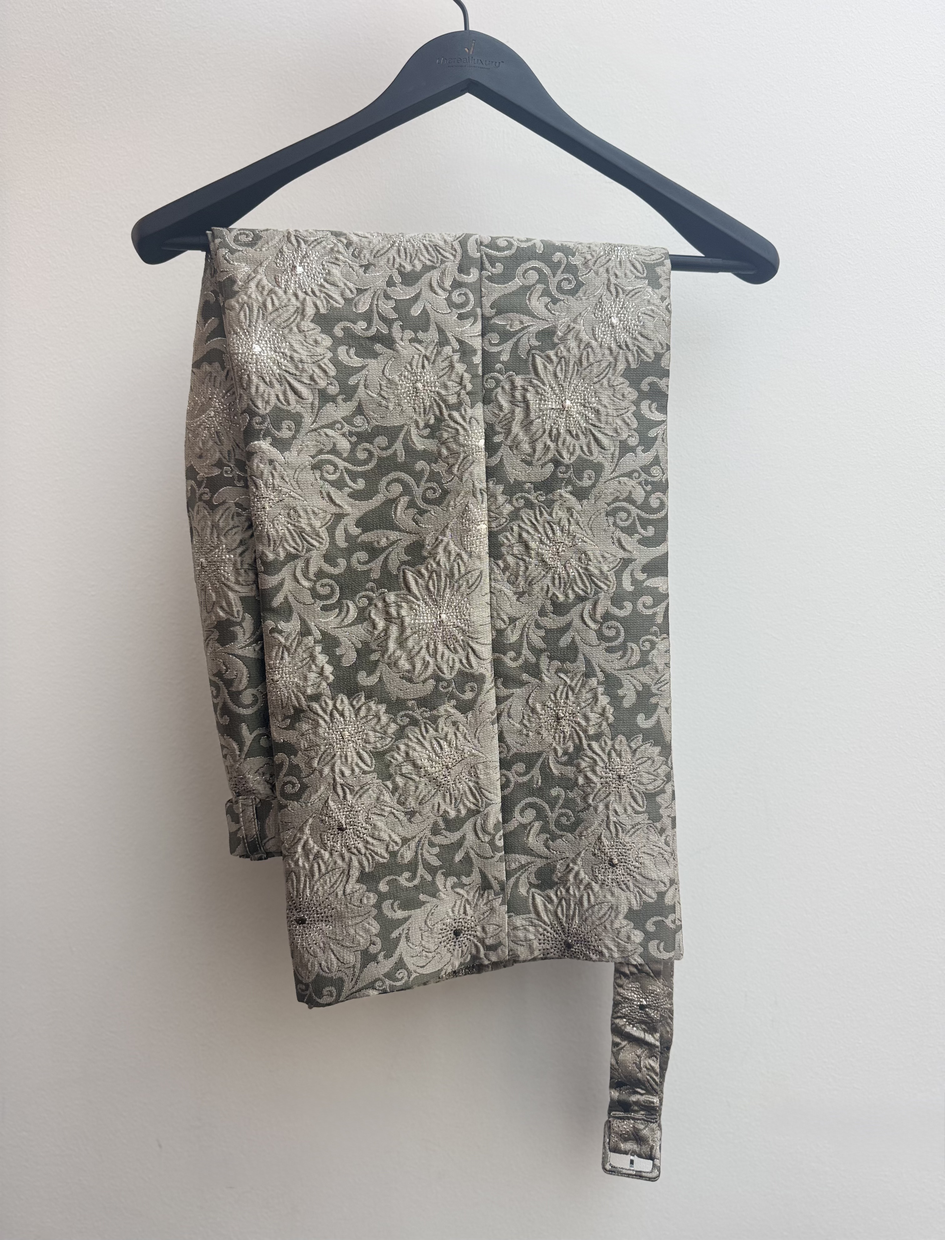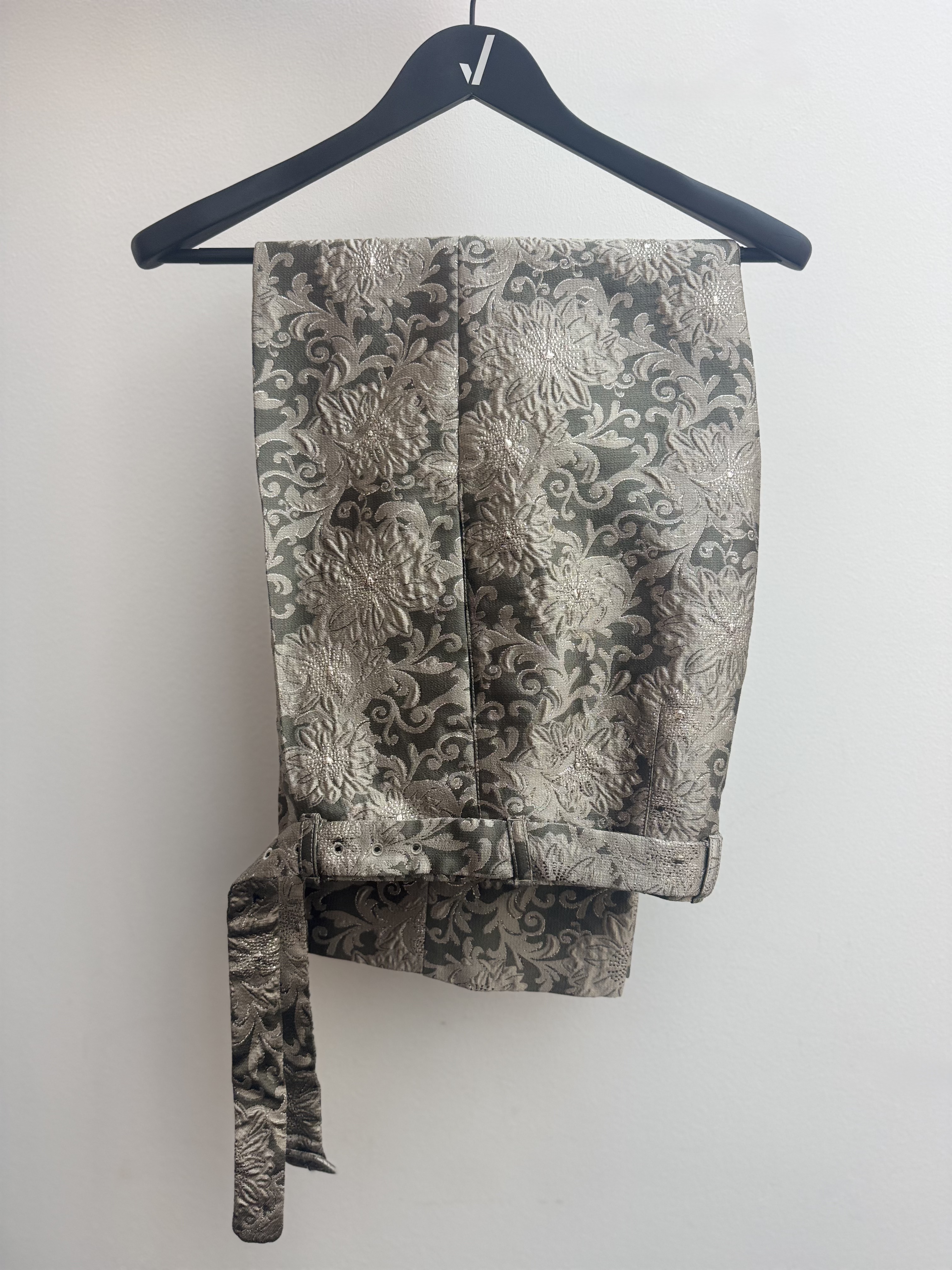 The 'S Max Mara Grey Floral Jacquard Straight Trousers combine elegance and comfort with a refined floral jacquard pattern. Crafted from high-quality fabric, these trousers offer a tailored straight-leg fit, perfect for both professional and casual settings. The subtle floral design adds texture and depth, making them a versatile wardrobe staple for a sophisticated look.