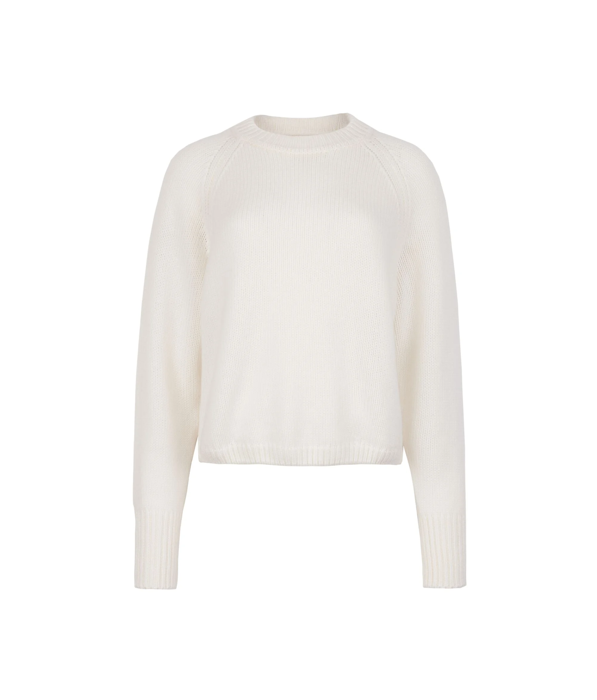 Add luxury and comfort to your wardrobe with this exclusive round-neck jumper in Ultrasoft Cashmere tricot. With its multi-ply yarn, it is embellished with a ribbed finish on the neckline and long cuffs, adding a touch of class to the understated design of the piece. The rolled hem and raglan sleeves make for modern, distinctive details to complete the look. Its loose wearability provides a relaxed and natural fit, in perfect contemporary style.